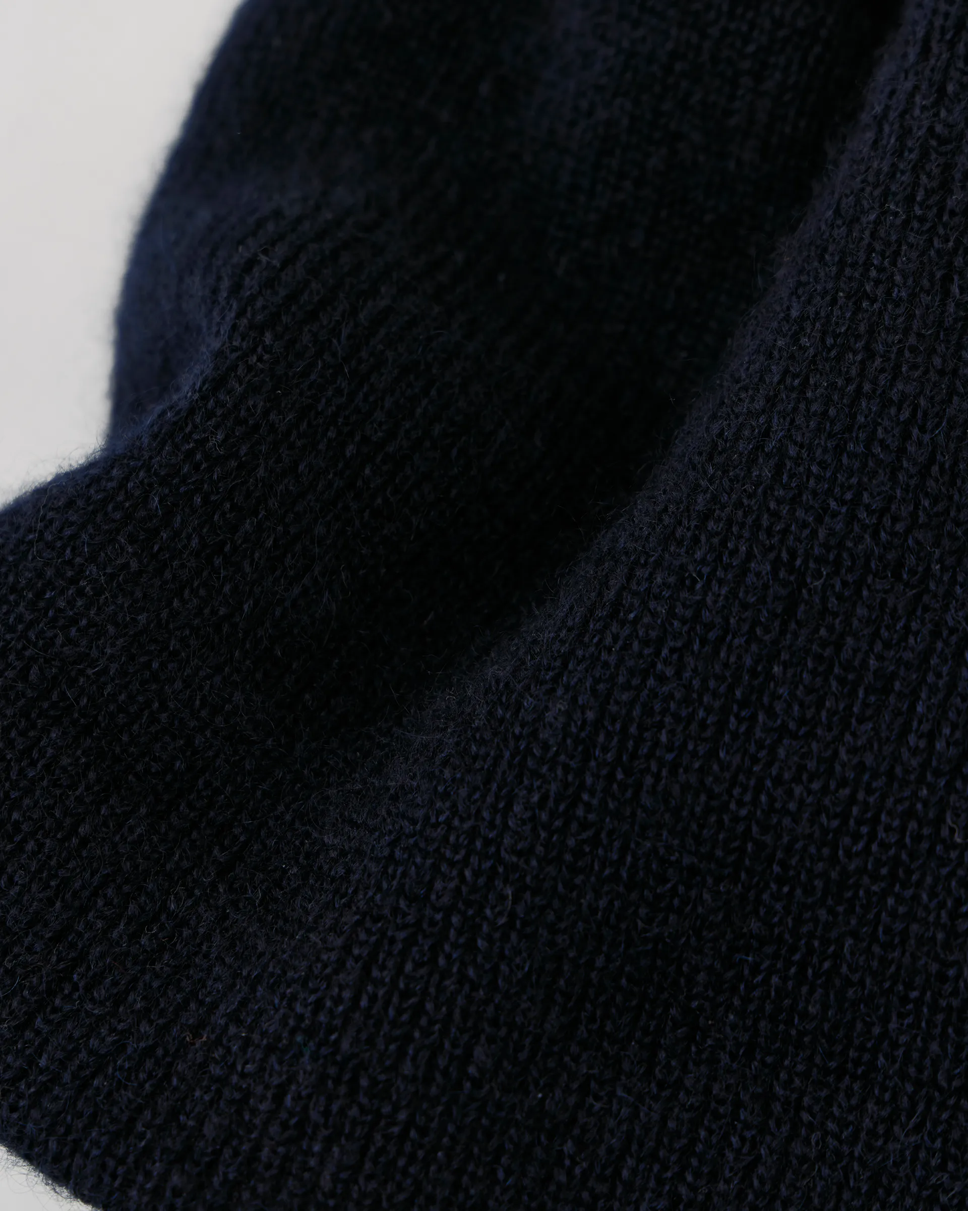 先染めのモヘアシルク糸を編み立てたワッチキャップ。1950年代のU.S. NAVYのワッチキャップをリファレンスとしたデザインで、1990年代のブラックミュージックシーンに見られたアーティストの着こなしを投影した大きめサイズ感が特徴です。