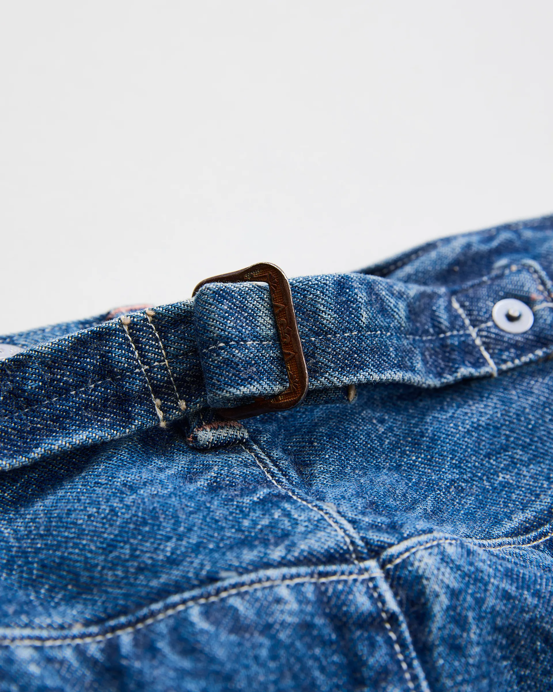 13ozの右綾で織り上げた生機デニム生地で製作したジーンズ。ヴィンテージジーンズに見られる「捻れ」の特性をリファレンスとし、左右で異なるパターン取りを採用した非対称なデザイン。生地はロープ染色によるピュアインディゴの芯白糸を、米綿を中心に中南米の良質な綿を混紡したナチュラルなムラ糸で構成。職人の手作業によるムラ感を表現した製品加工が履き古したような立体感と奥行きを表現しています。ワークウェアのDNAを継承しながらも、素材・構造・加工のすべてにおいて革新を加えた、次世代のフォルムを提案する一本です。
