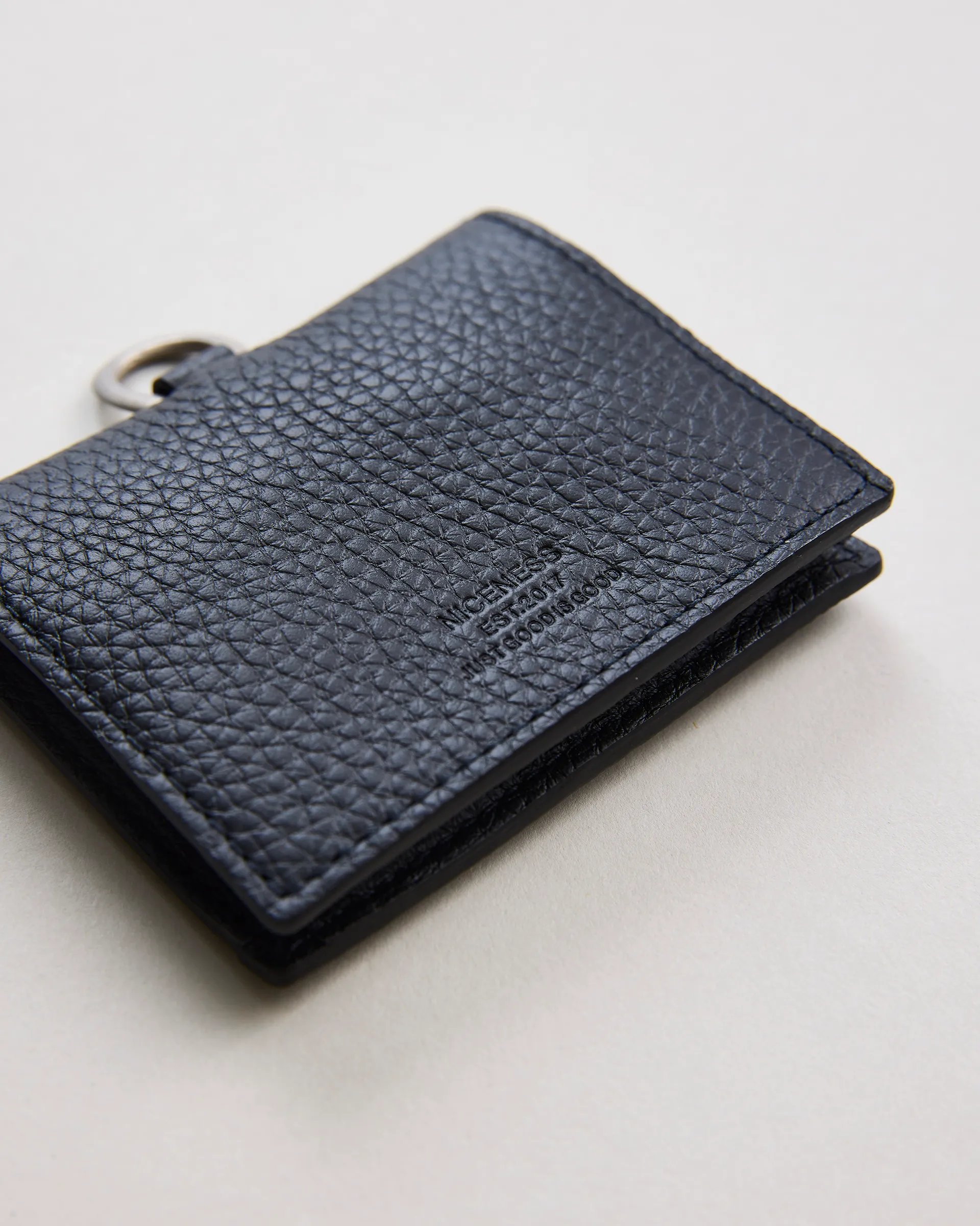 重厚感と柔らかさを併せ持つフランス産トリヨンラグーンを使用し、日常に寄り添う多機能型のレザーアクセサリーを製作。デザインは、ミニマルなコインケース型ウォレットをベースに、ブランドを象徴するNNのパターンを内側にひそませた構造。別売りのストラップと組み合わせれば、首掛け・肩掛け・ポケット収納と使い方は自由自在。必要な機能を最小限のフォルムに凝縮し、スタイルやシーンに応じた多彩な使い方が可能です。ユニセックスでお使いいただける、現代的なレザーアイテムの提案です。