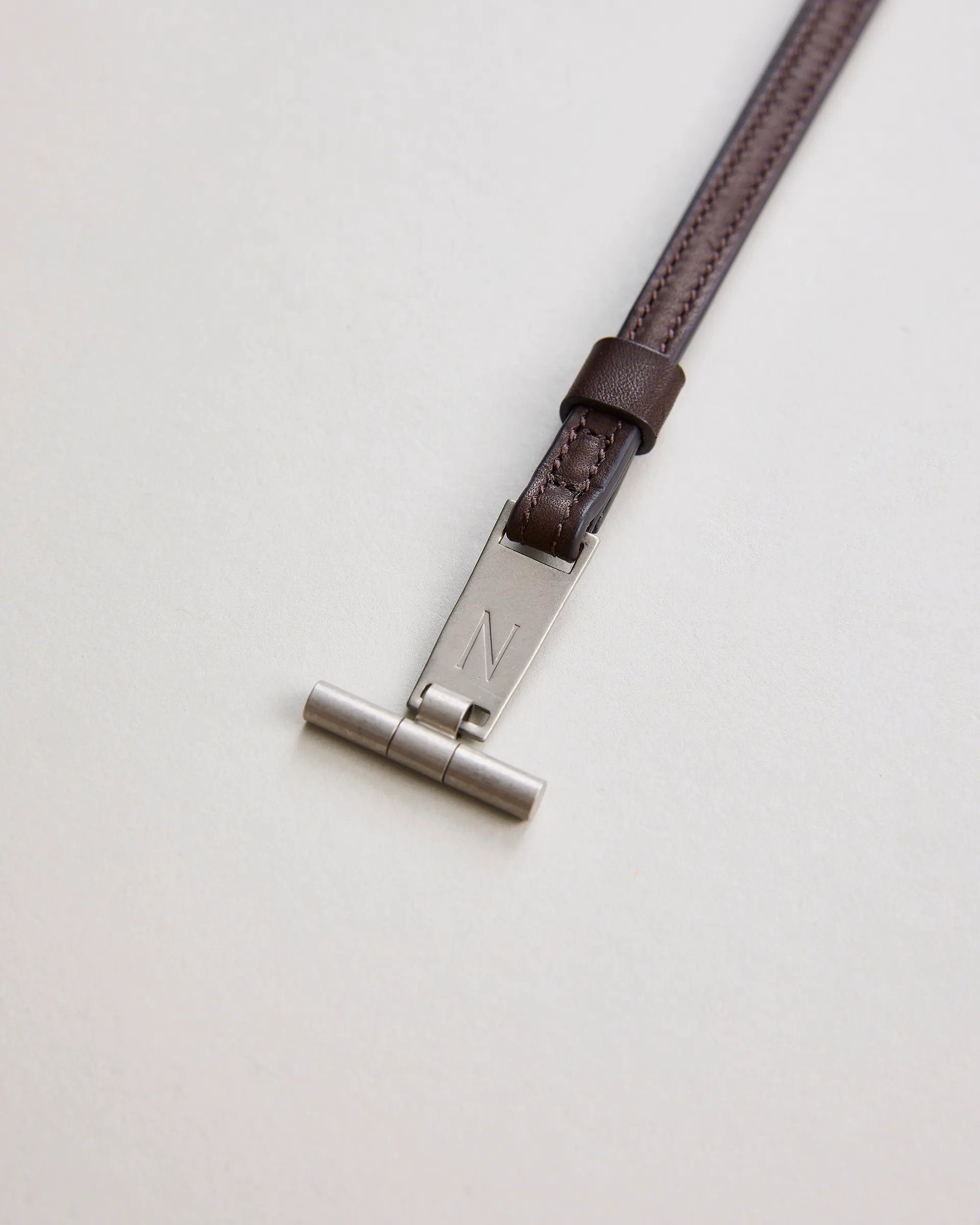 ドイツの老舗タンナーRichard Hofmann社製のカーフレザーを使用したNNレザーアクセサリー対応のアタッチメント。落ち着いた光沢感、そして手に吸いつくような質感が特徴で、上品さと高い耐久性を兼ね備えた素材です。デザインには独自のTバー構造を採用。ベルトループへの装着はもちろん、バッグのハンドルなどにも簡単に取り付け可能。日常のスタイルに自然と溶け込む、シンプルながらも機能性の高い設計です。レザーアクセサリーシリーズとシーンに応じて組み合わせることで、持ち物の拡張性を高めてくれる実用性の高いアイテム。