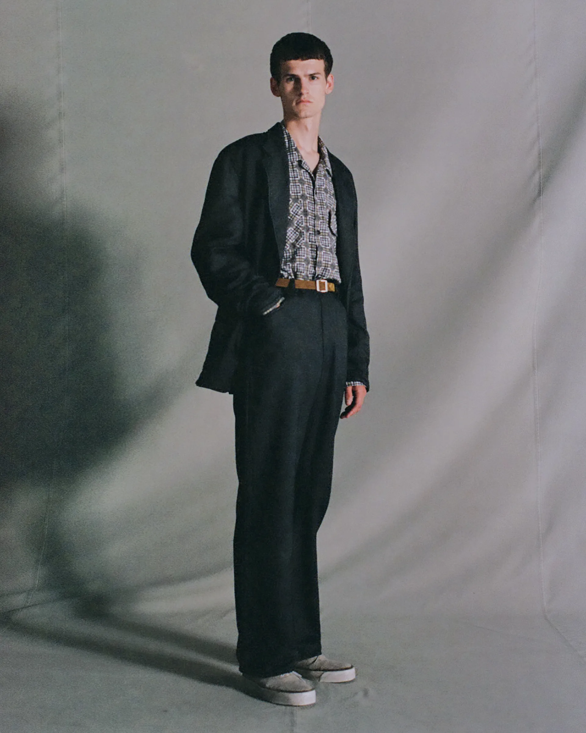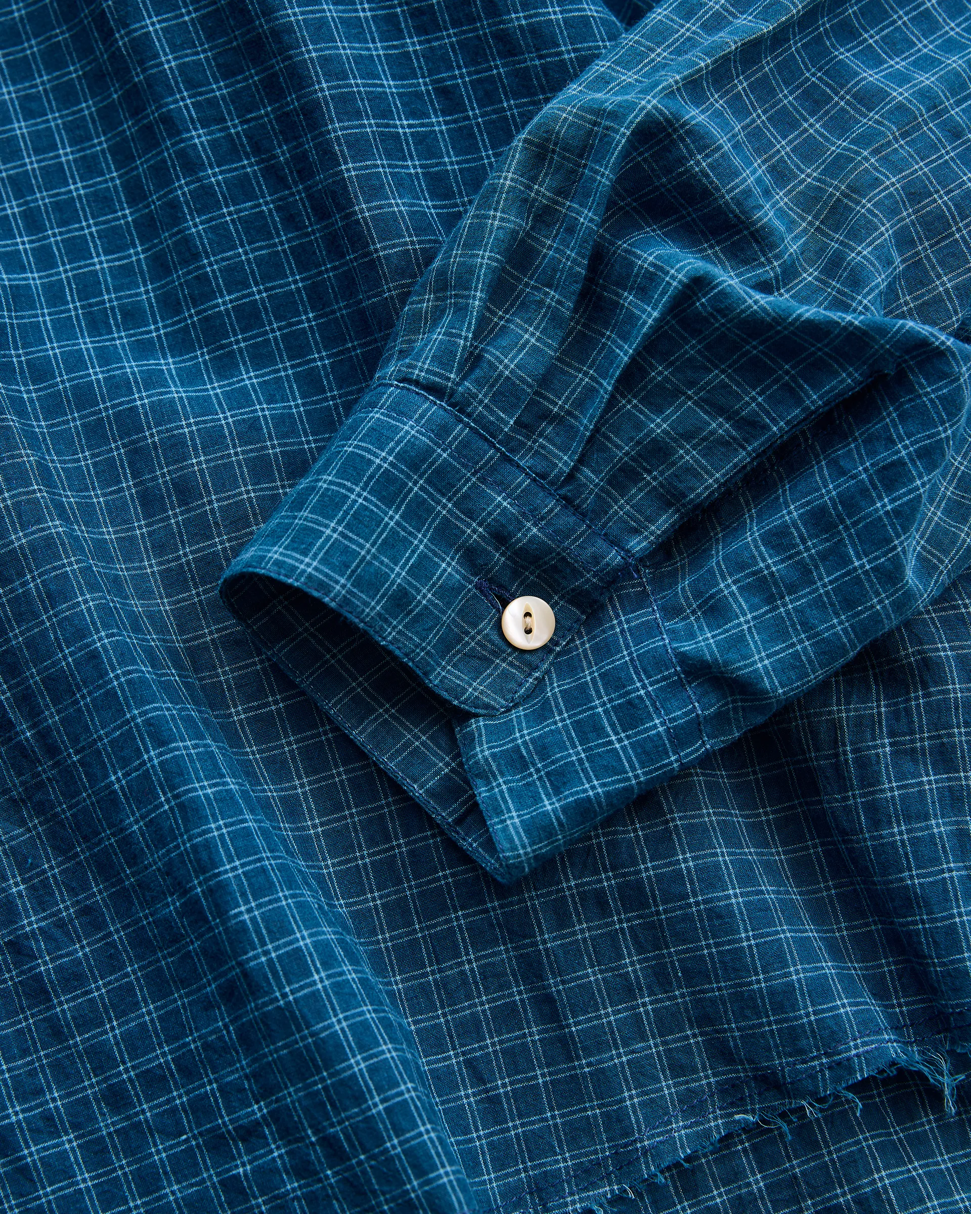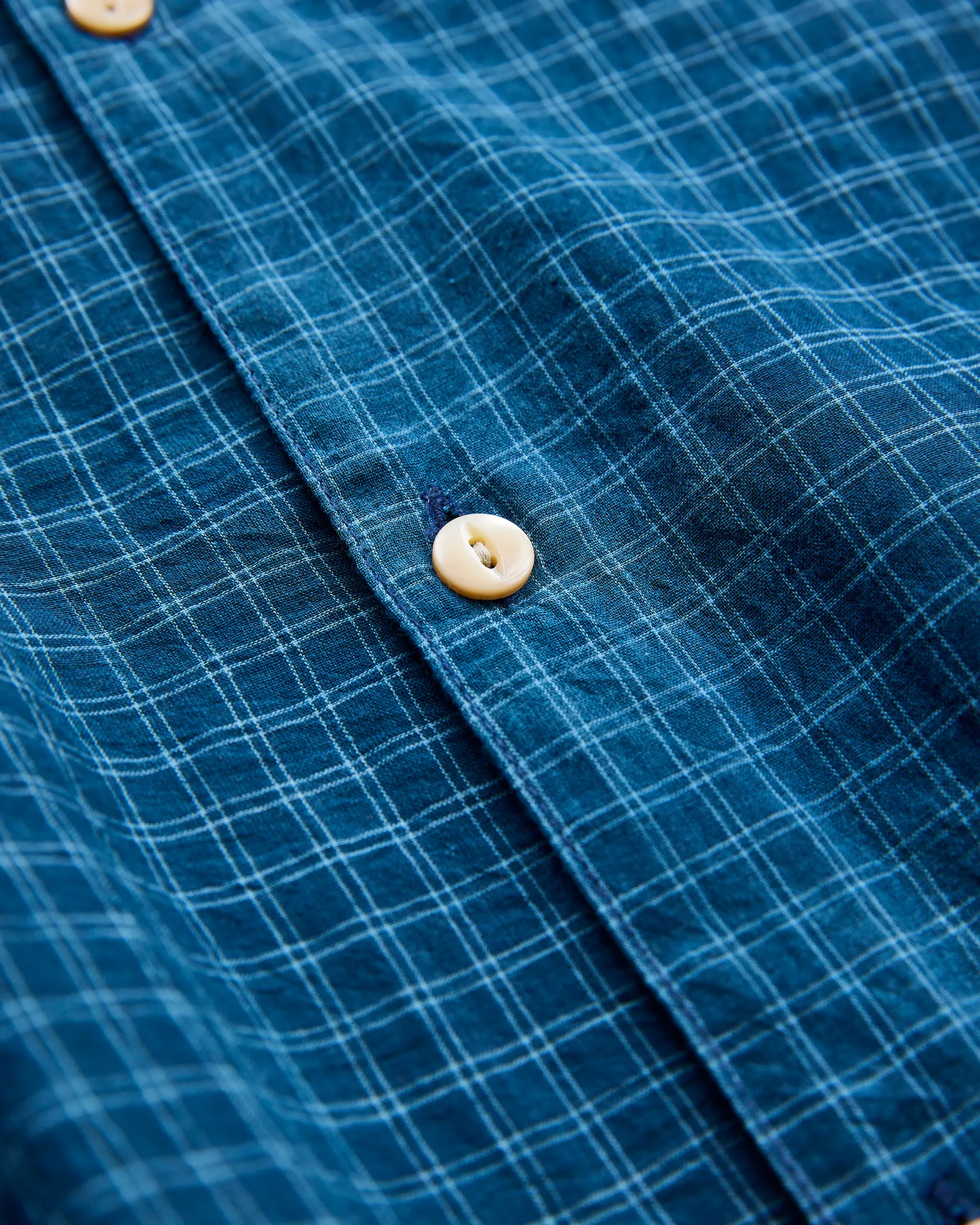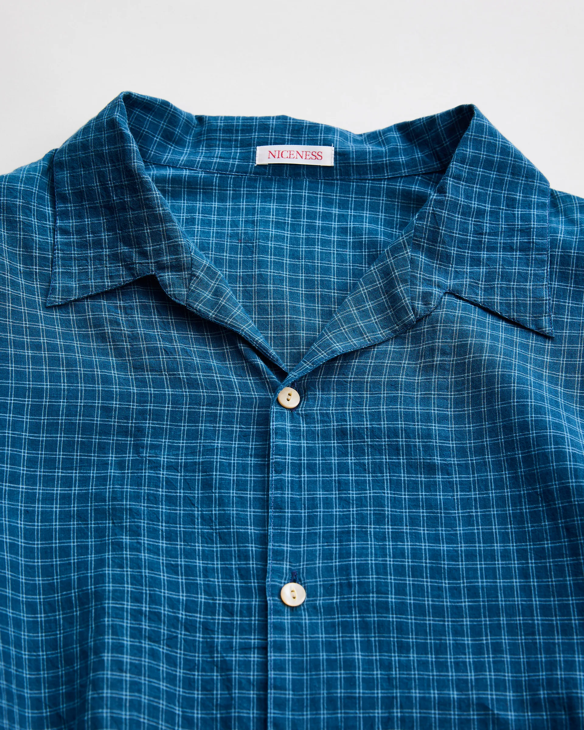 インドで手紡ぎ・手織りされ本藍による草木染めの先染めチェック柄を施したカディコットン生地で製作したロースロープシャツ。極細糸で構成された精緻なチェックを手織り機で生産するためには非常に高い集中力と技術を要し、まさにクラフトマンシップの結晶とも言える素材です。型はイタリアンシャツのクラシックな要素を取り入れ、繊細なドレープ感と洗練されたバランスを作り出しています。ファインヤーンによる上質な光沢とハリが加わることで、素朴さとエレガンスが同居した独特な表情を見せるクラシカルシャツに仕上がっています。