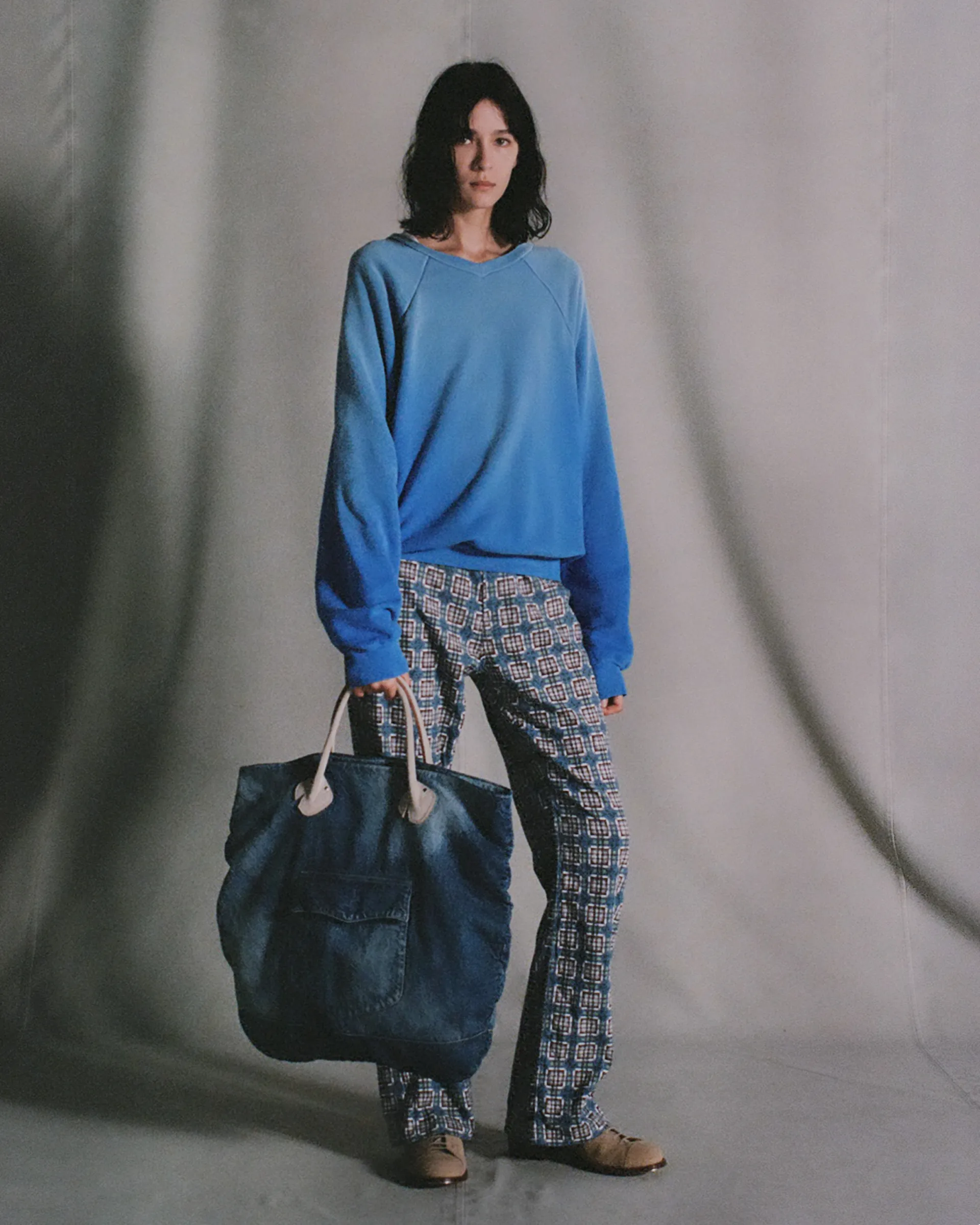 Distressed Denim NN Shirring Bag