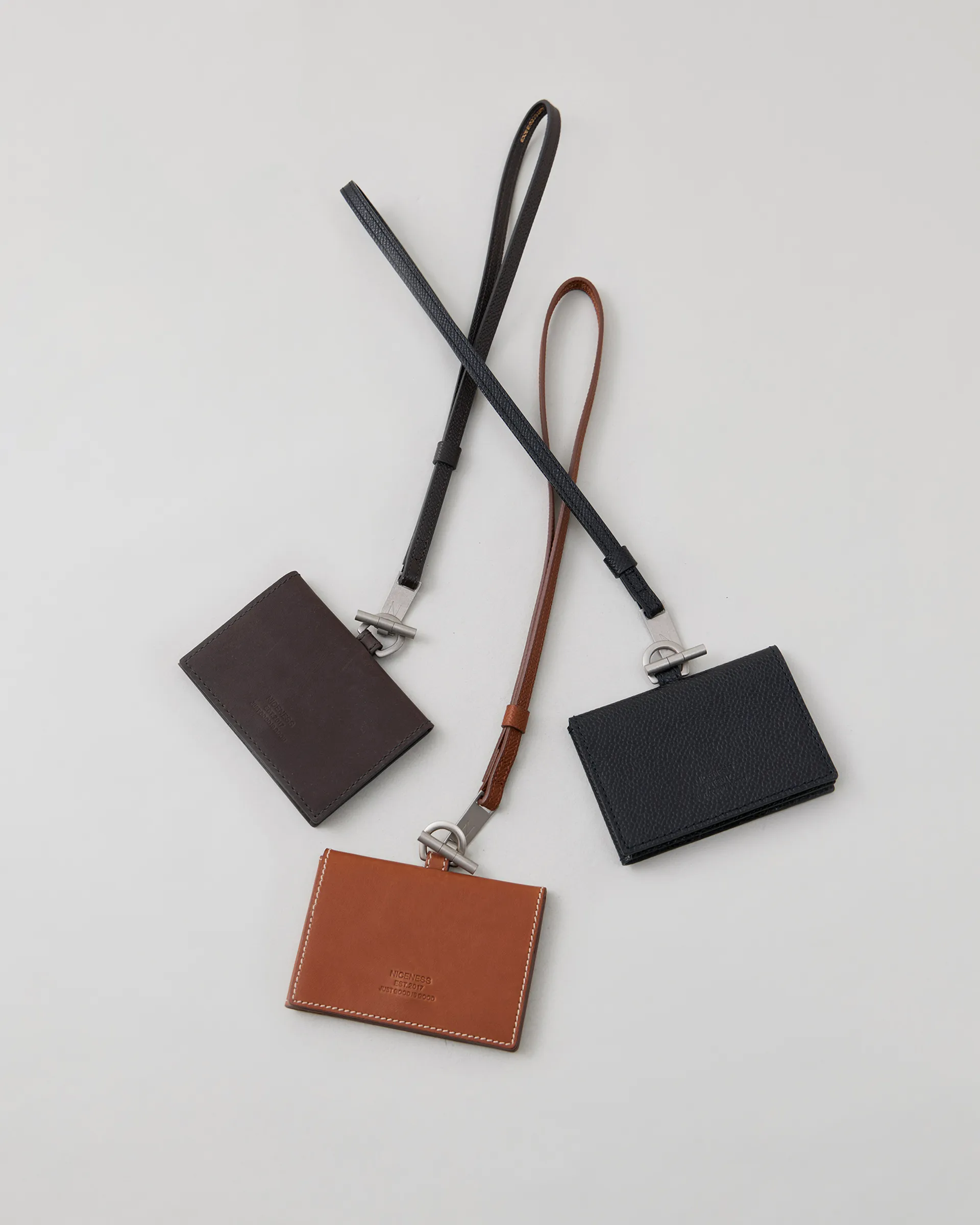 HAAS社のアルザスレザーを使用したコインケース。コニャックとブラウンには、仔牛皮革をベースにしたベジタブルタンニンとミネラルのハイブリッド鞣しのレザーを使用。ブラックには、キャビアのような表情を持つ「ブラックダイヤ」と呼ばれるシボ感のあるレザーを採用しています。別売りのストラップを用いて同シリーズのレザーグッズと組み合わせて使用が可能です。