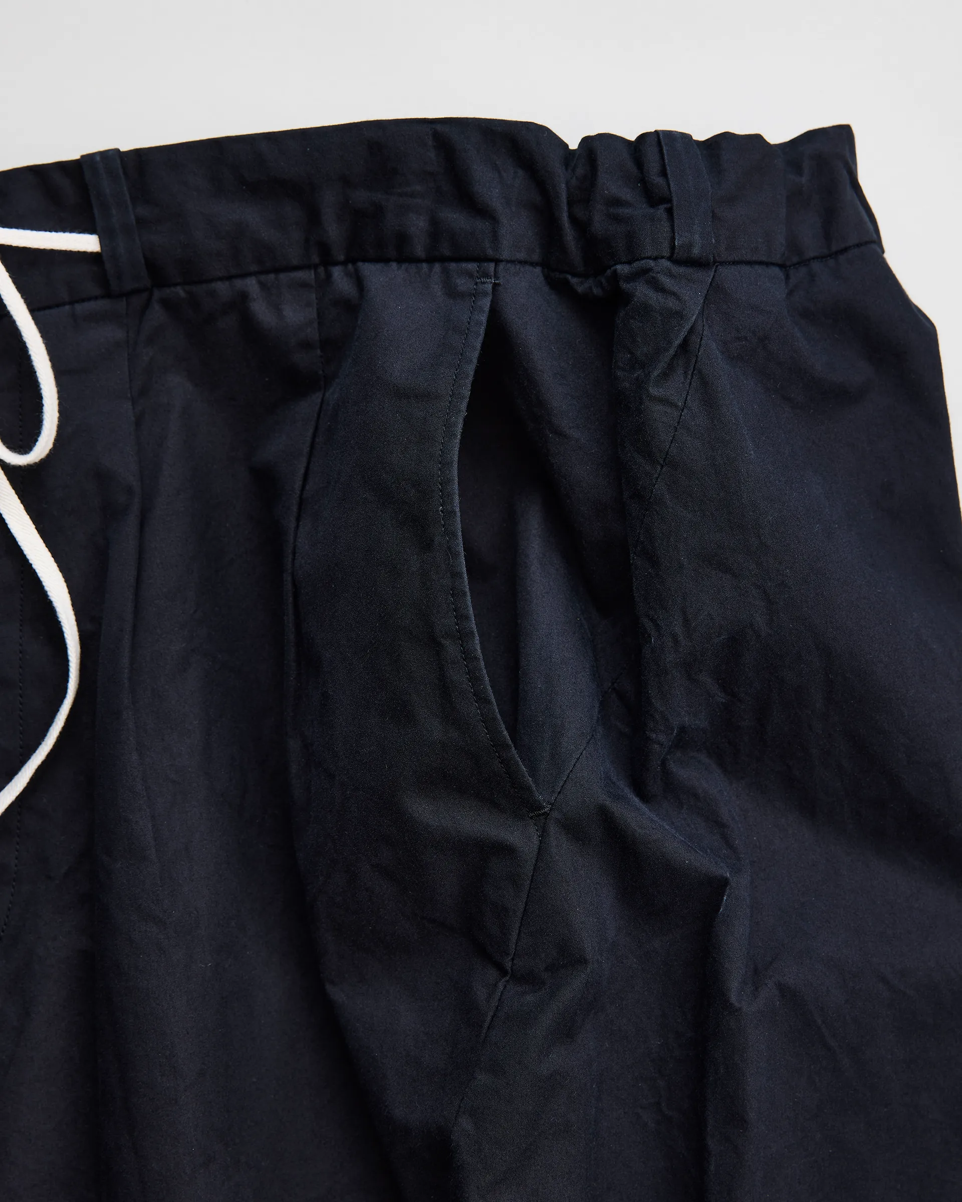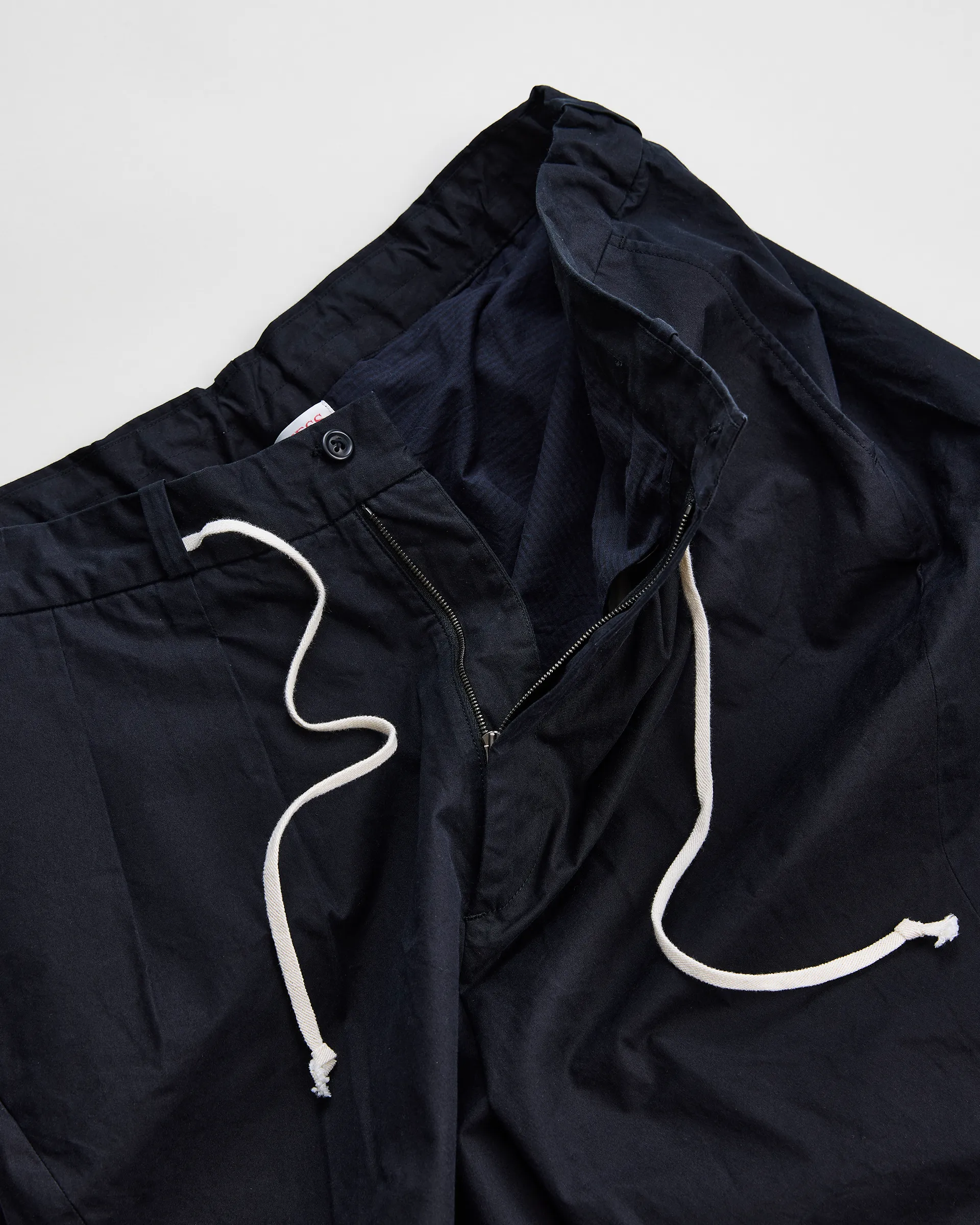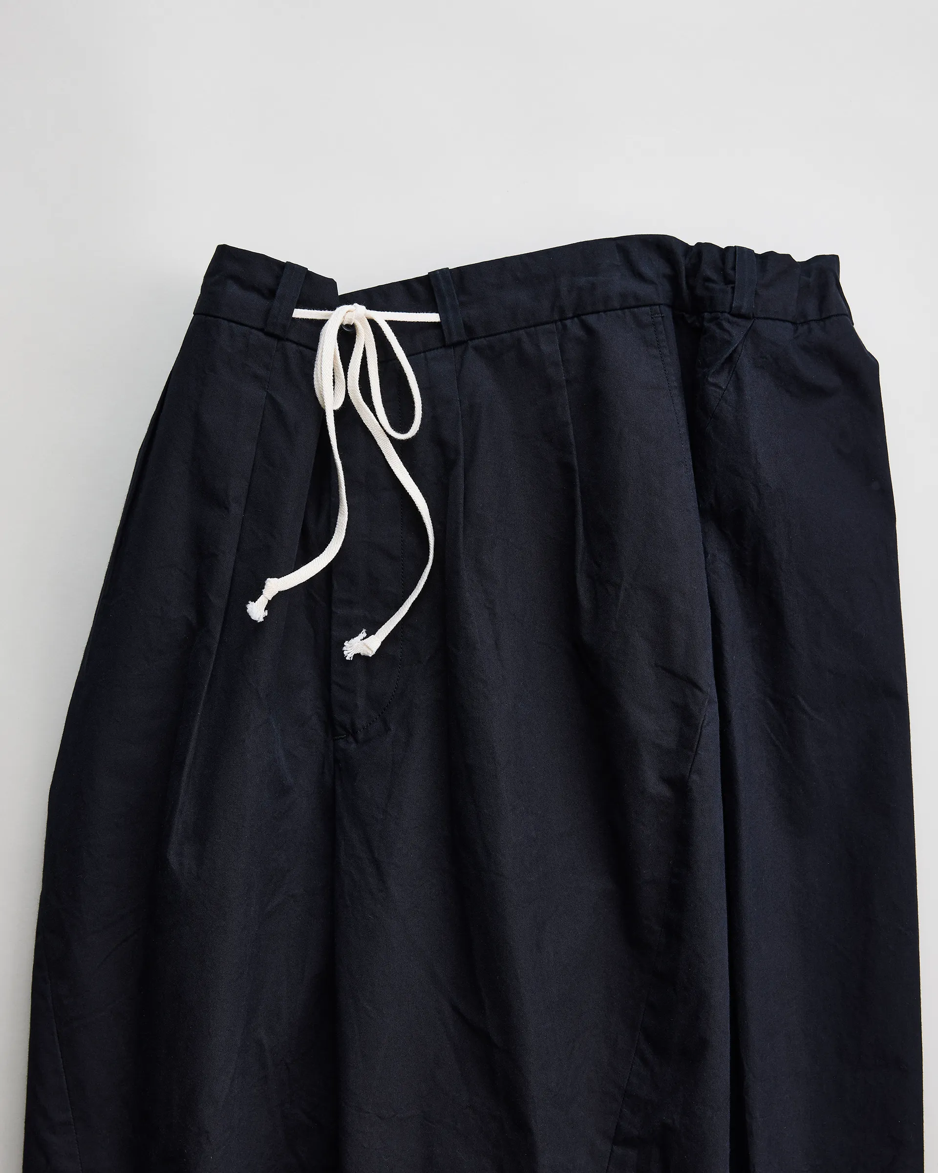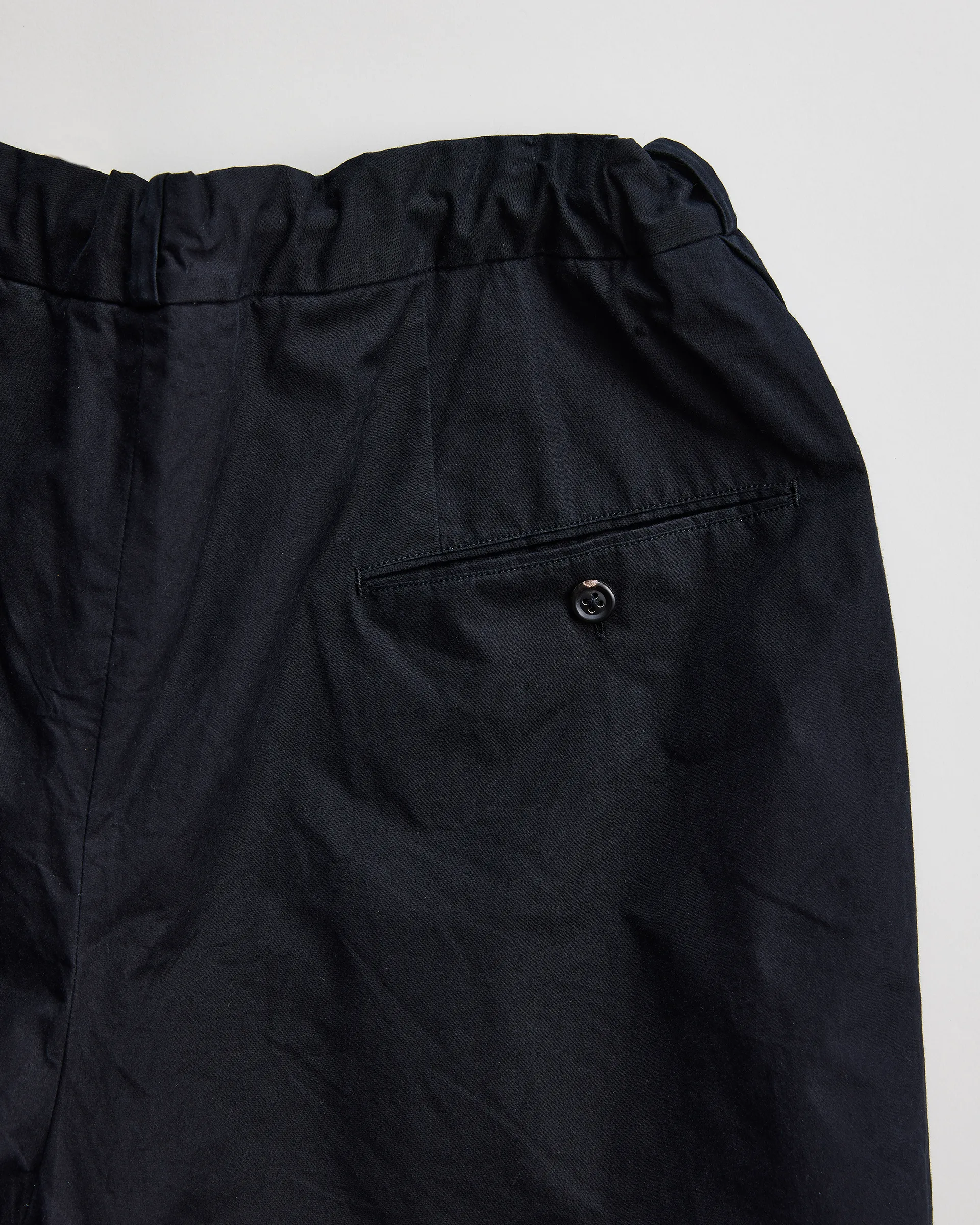 都市と自然、ドレスとワーク、伝統と革新という相反する価値観を静かに内包したルースシルエットのローバーパンツ。細番手の超長綿を限界まで高密度に打ち込んだ綿100%の先染め素材で製作しました。化学繊維を一切使わず、耐水圧900mmという優れた防水性・防風性を備えた究極の天然素材を採用。仕上げに撥水加工を施し実用性を確保。パターン設計に立体裁断を取り入れ、膝の屈伸を想定した構造に。ROVER(放浪者)の名の通り街からアウトドアまでを自在に横断し、時間の経過とともに表情を変え、着る者の個性とともに静かに育つ一本です。