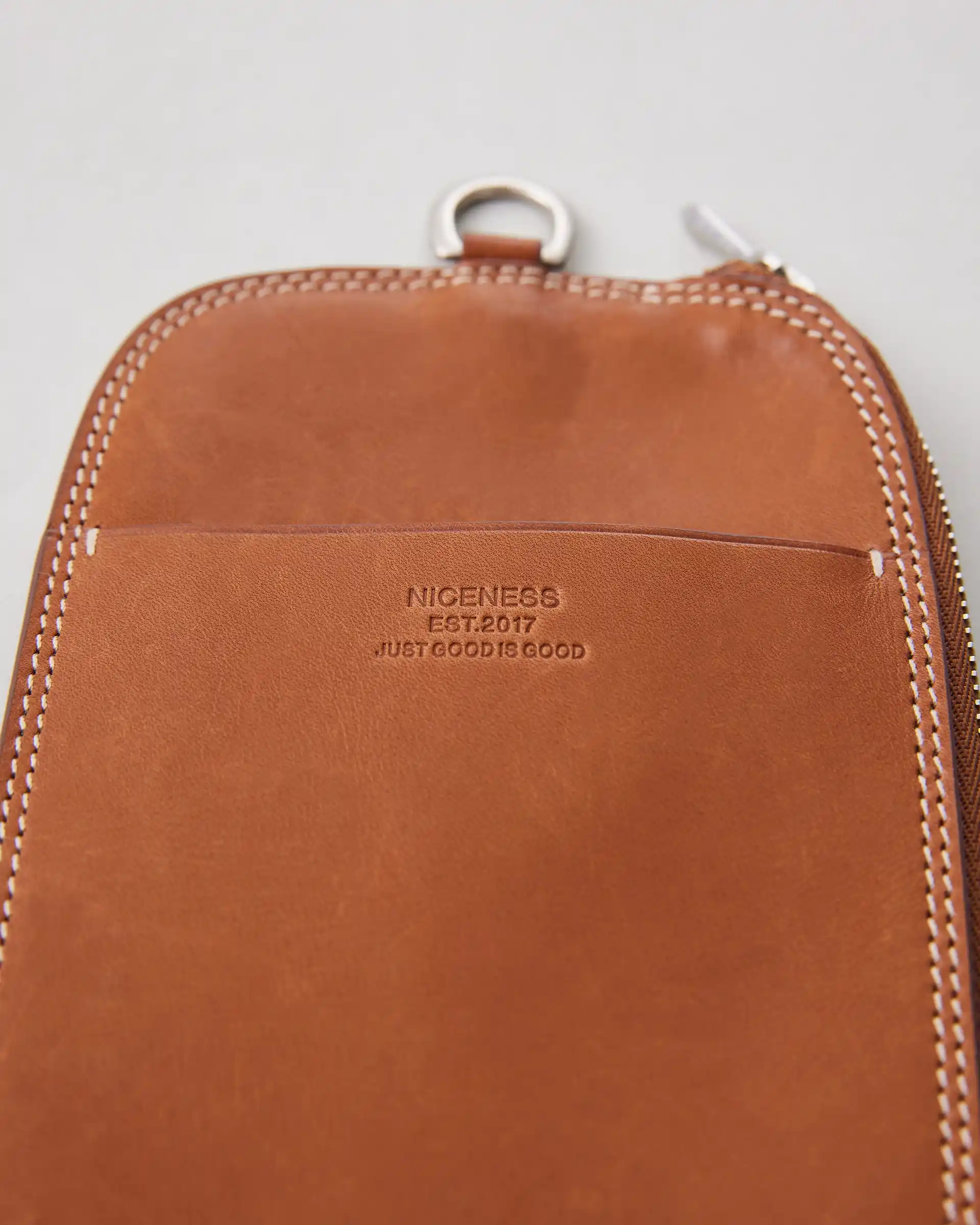 HAAS社のアルザスレザーを使用したガジェットケース。モバイルアイテムが収納可能。ブラウンに色は仔牛皮革のハイブリッド鞣しを使用し、ブラックには「ブラックダイヤ」と呼ばれるキャビアに似た質感のレザーを使用しています。サイドファスナーを設けることで、モバイルアイテムだけでなくカードなども収納可能な多機能デザイン。別売りのストラップと組み合わせることで、首掛けや肩掛け、ポケット内収納など、目的や装いに応じて様々な使用方法が可能となります。