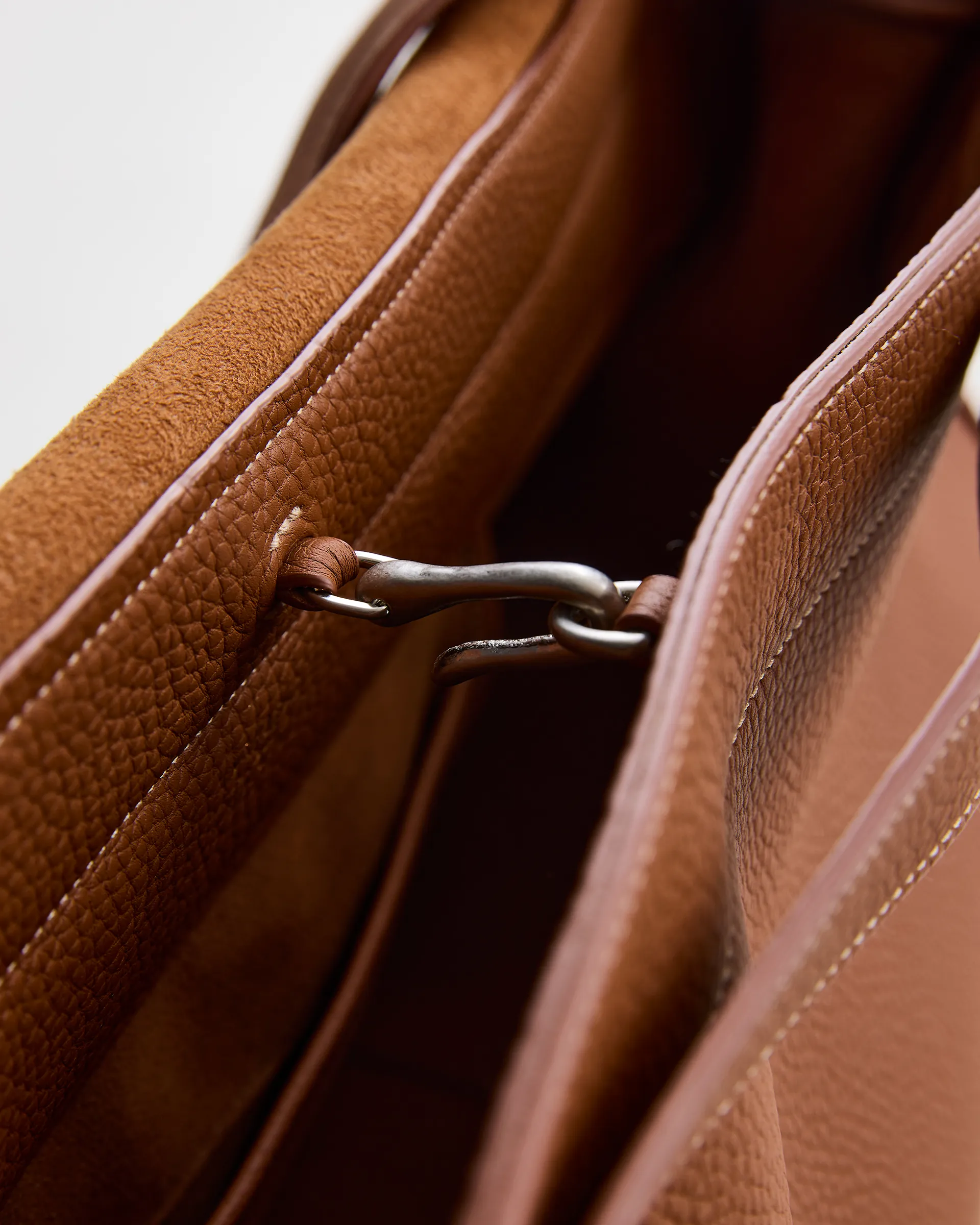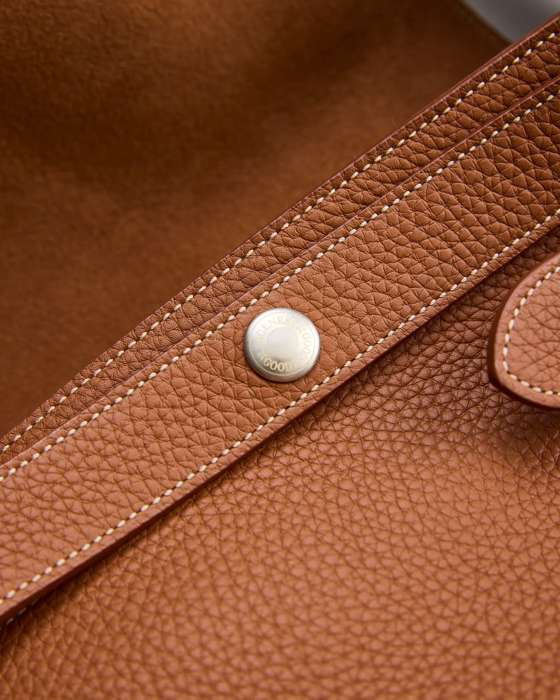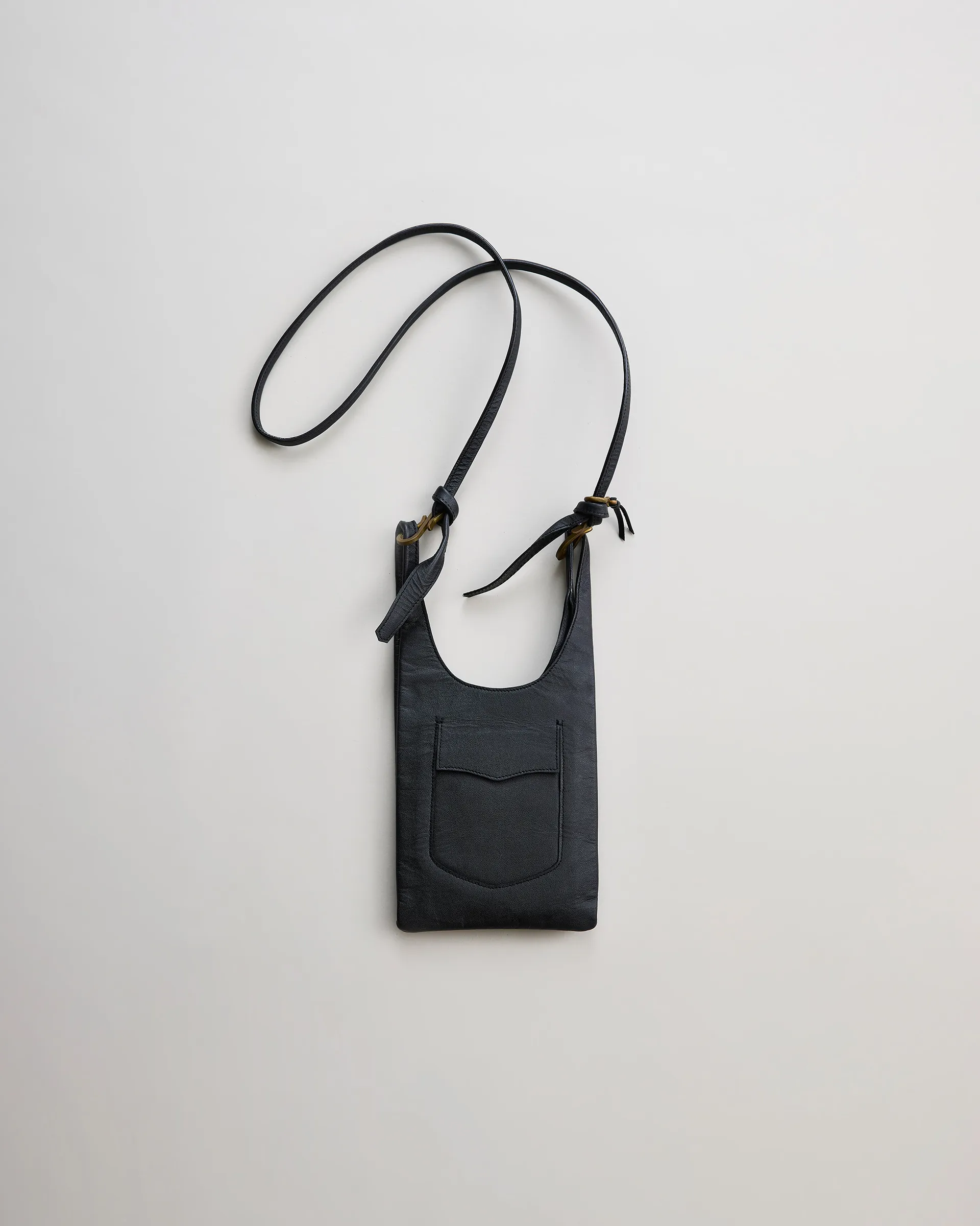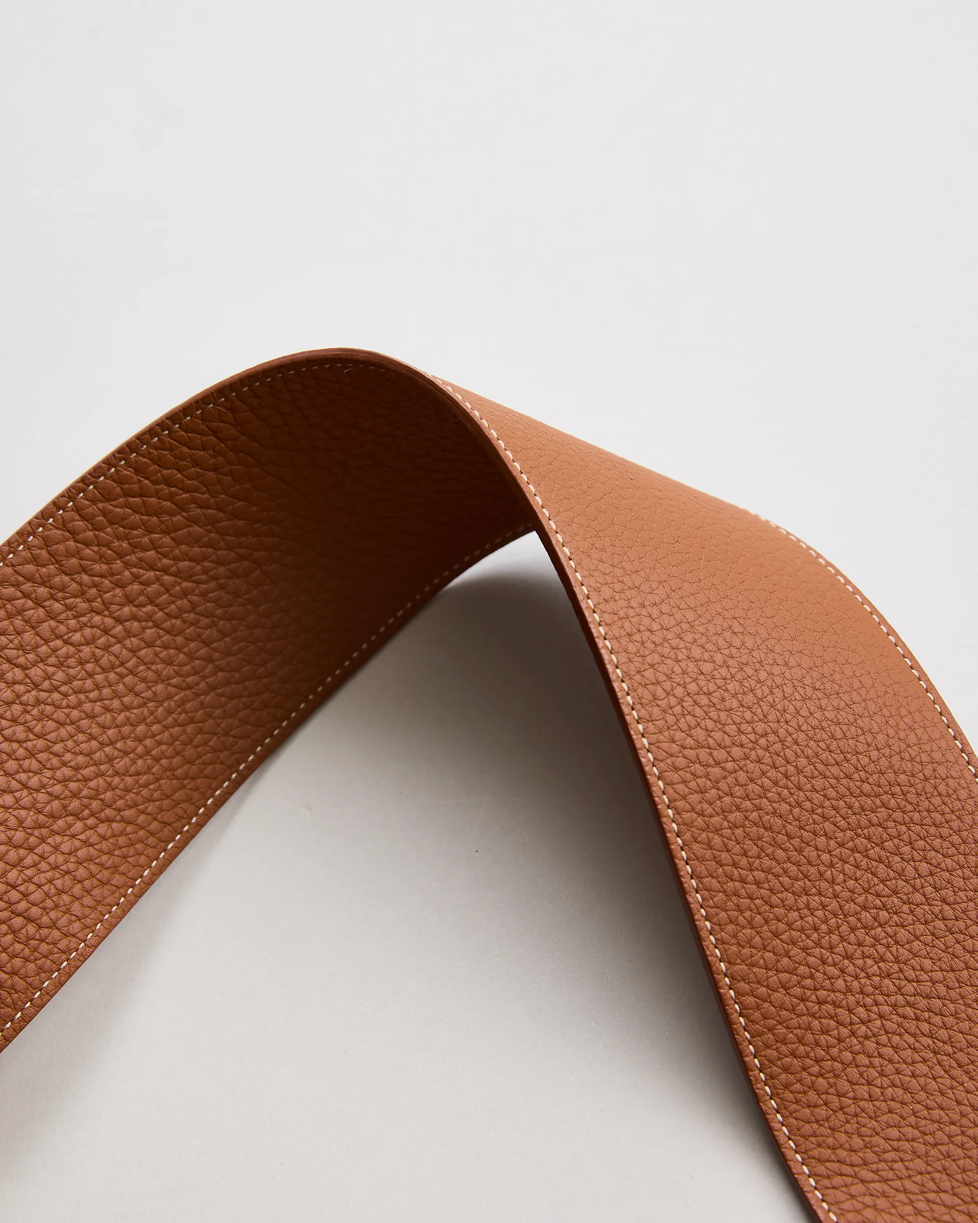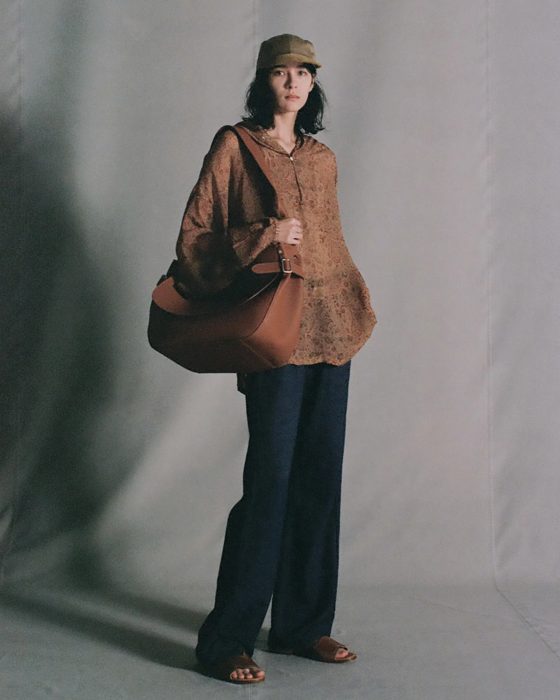南フランス・バスク地方で100年近くの伝統を守り続けるタンナーが製造したシュリンクレザー「トリヨンラグーン」を使用したポストマンバッグ。1920〜1930年代のニュースペーパーバッグとポストマンバッグをリファレンスに、現代的にアップデートさせています。両端に配したベルトは開口部をアジャストできるほか、フラップを抑える役割も果たしています。ストラップをバッグ内部に収納し、ハンドバッグとしても使用可能です。