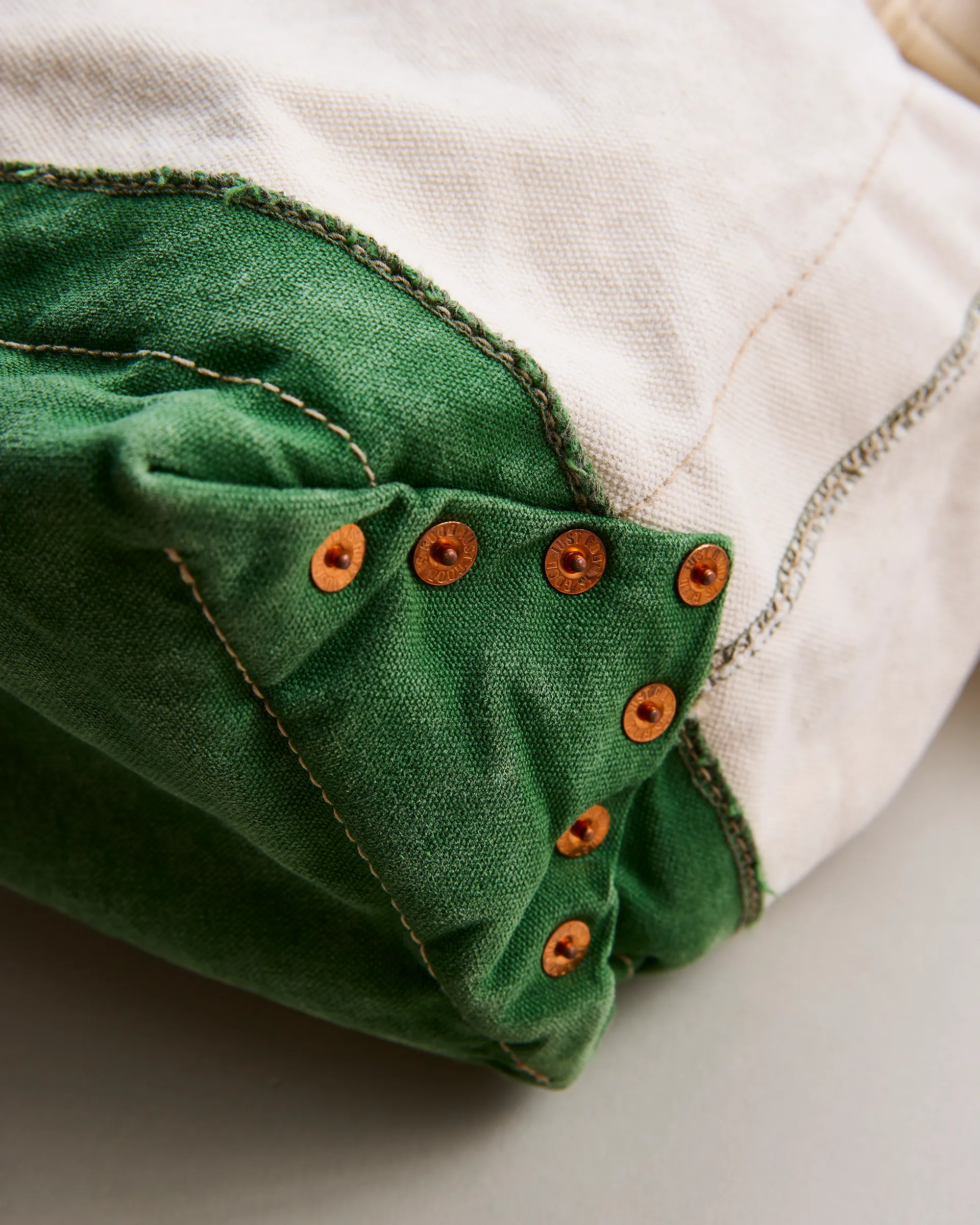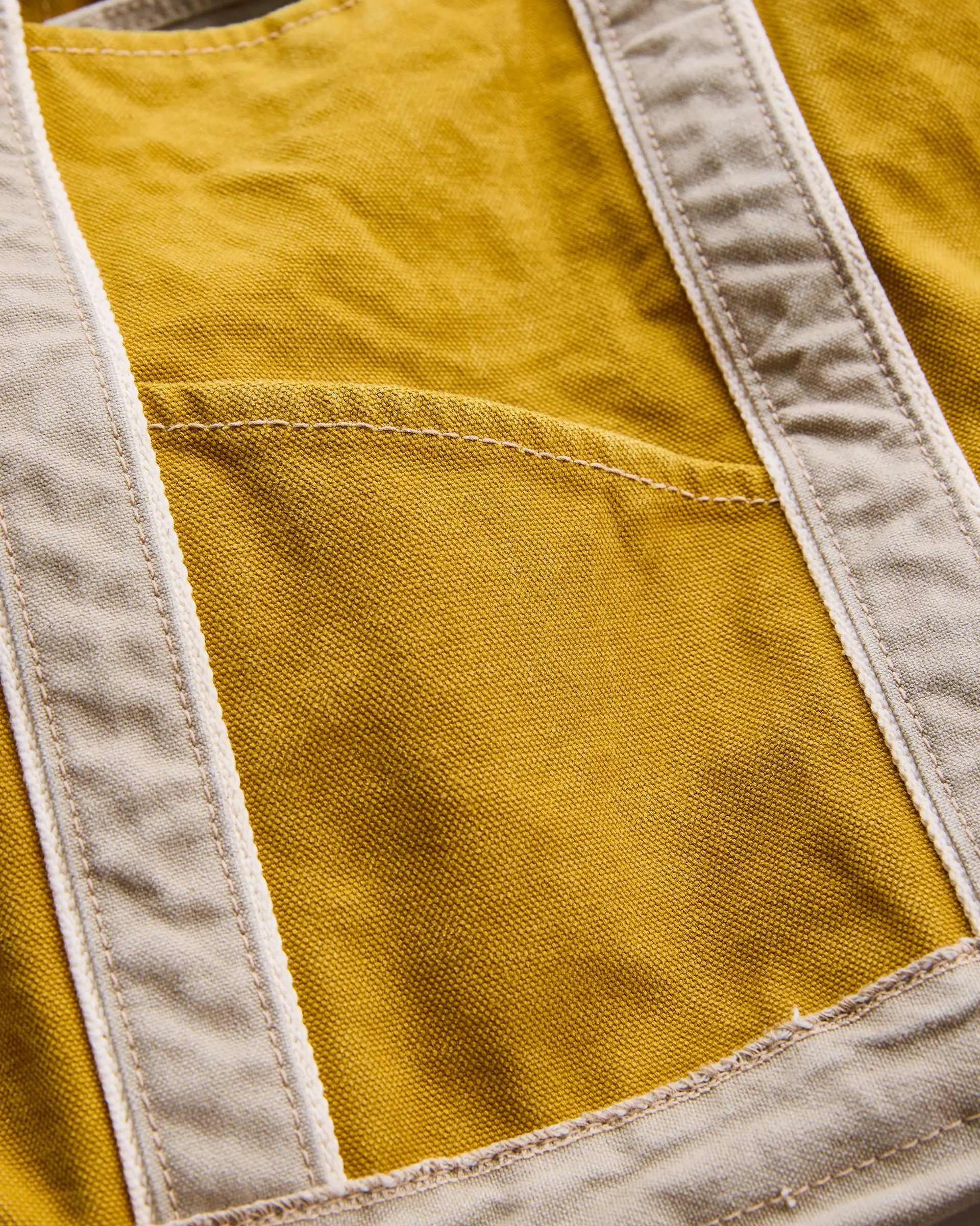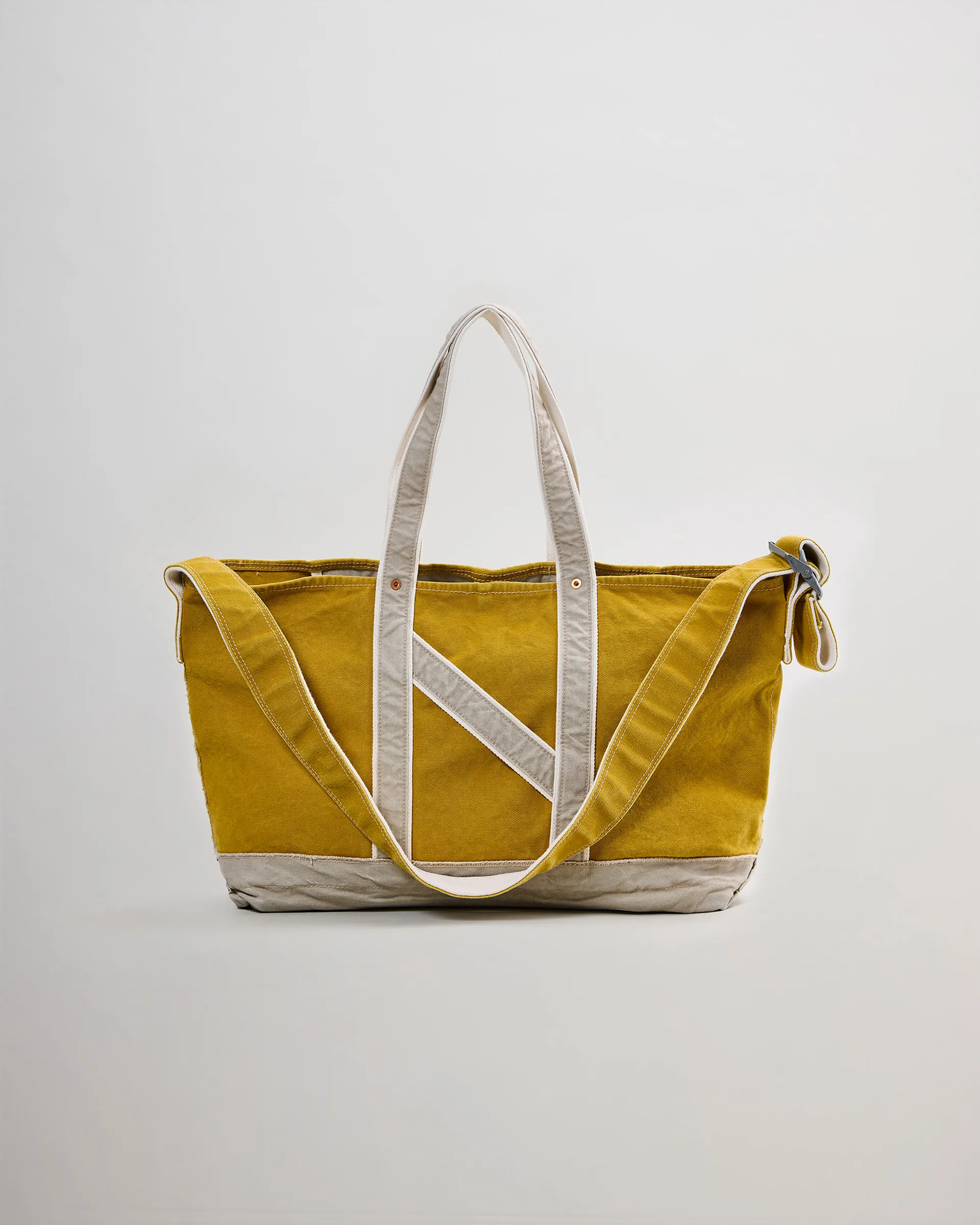 1920s〜1950sに登場した米国のツールバッグからインスピレーションを得てデザインしたショルダーストラップ付きトートバッグ。生地はシャトル織機で織り上げられた6号と10号帆布にワッシャー加工を施し、製品後にストーンウォッシュで仕上げてヴィンテージライクなアタリを演出しています。