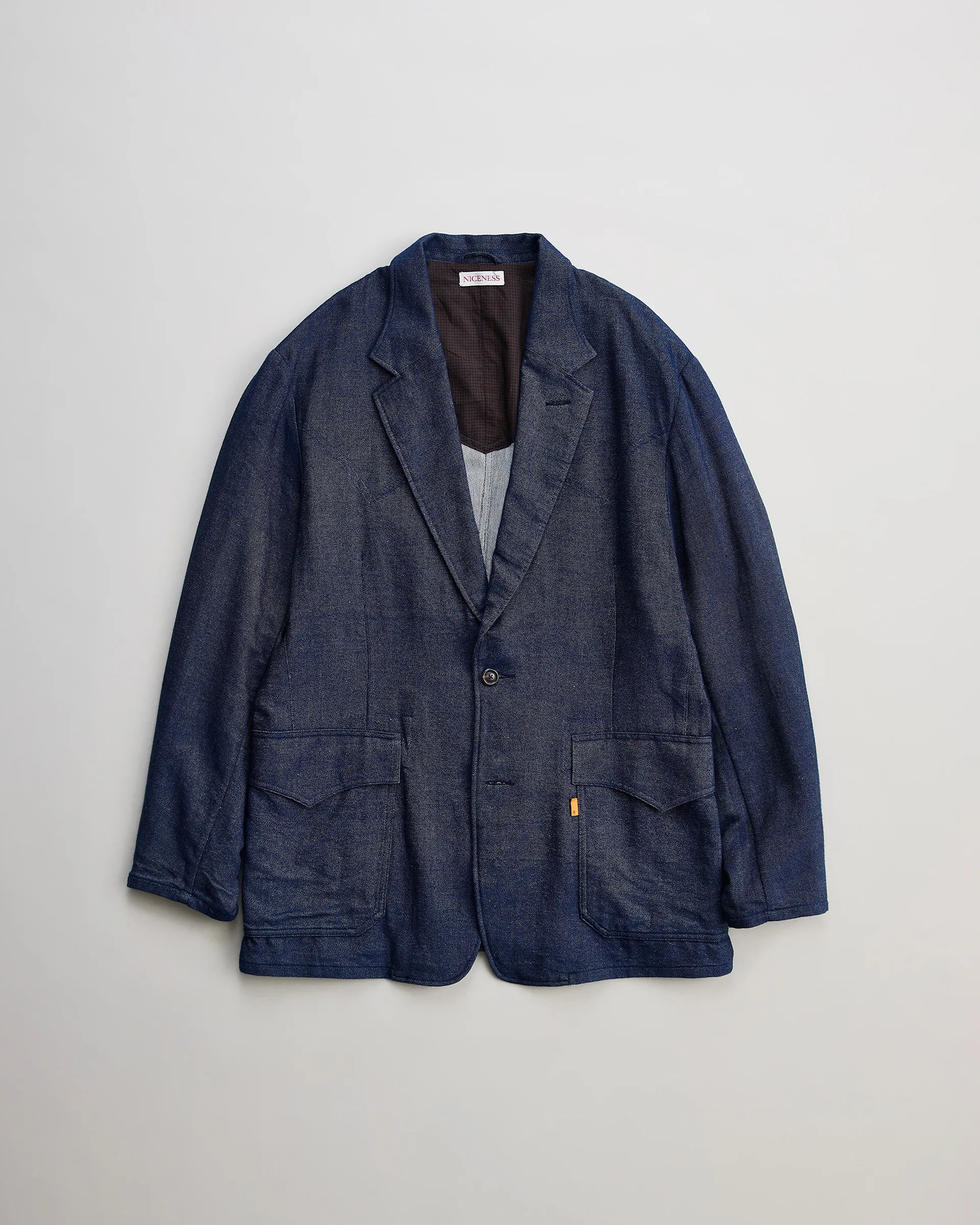 インド北部のストール工場で織られた特殊デニム生地で製作したウェスタンヨークのジャケット。空気を含んだような柔らかくふっくらとした風合いとしなやかな手触りが魅力。NICENESS初期にも通じる1970年代のデニムジャケットを着想源とし、ヴィンテージムードを残しつつパターンや縫製技術を現代的にアップデート。ややドロップショルダー気味のバランスと洗練されたシルエットにより、時代に馴染むモダンな佇まいに仕上げています。着用を重ねることで独特の経年変化を楽しめる一着です。