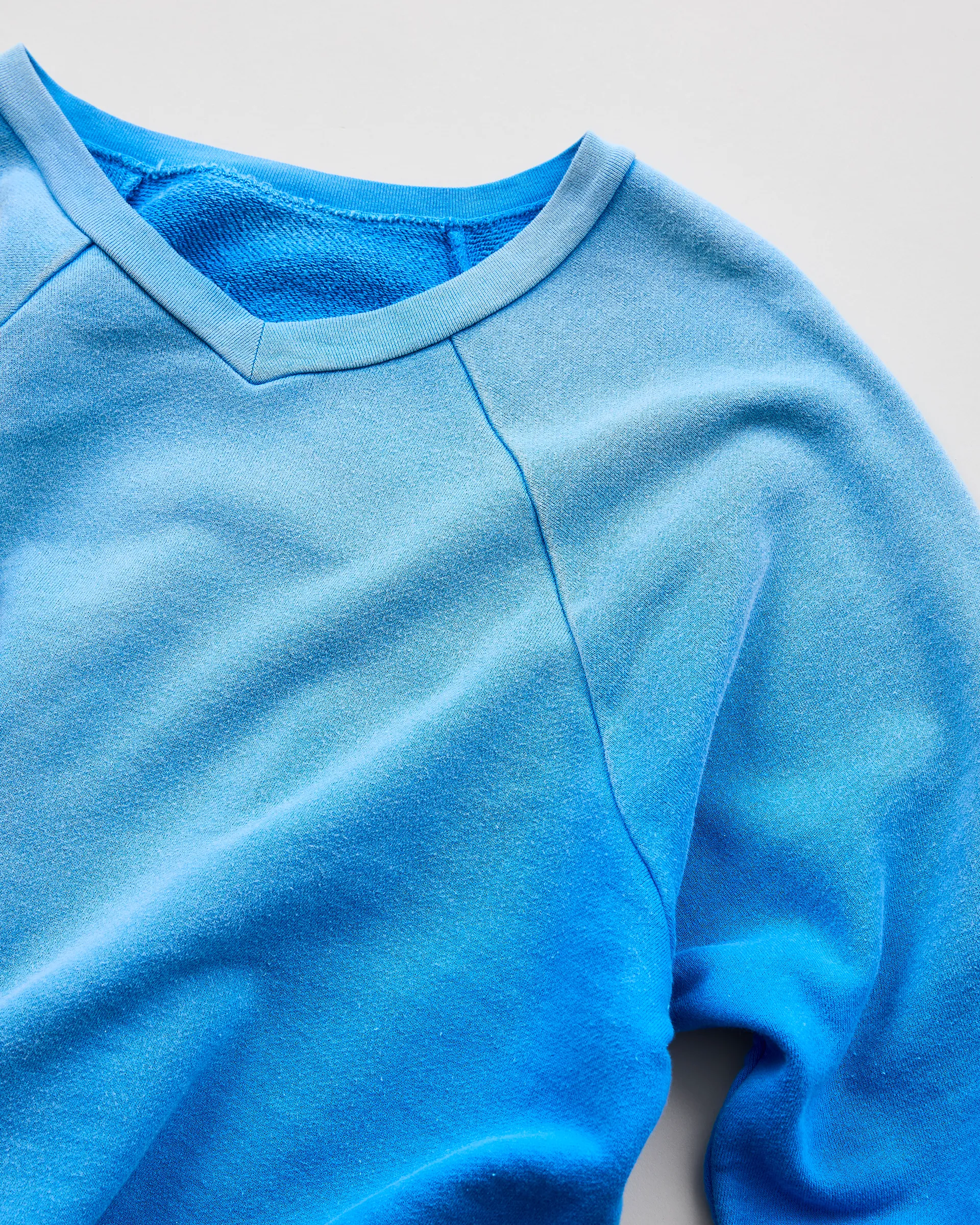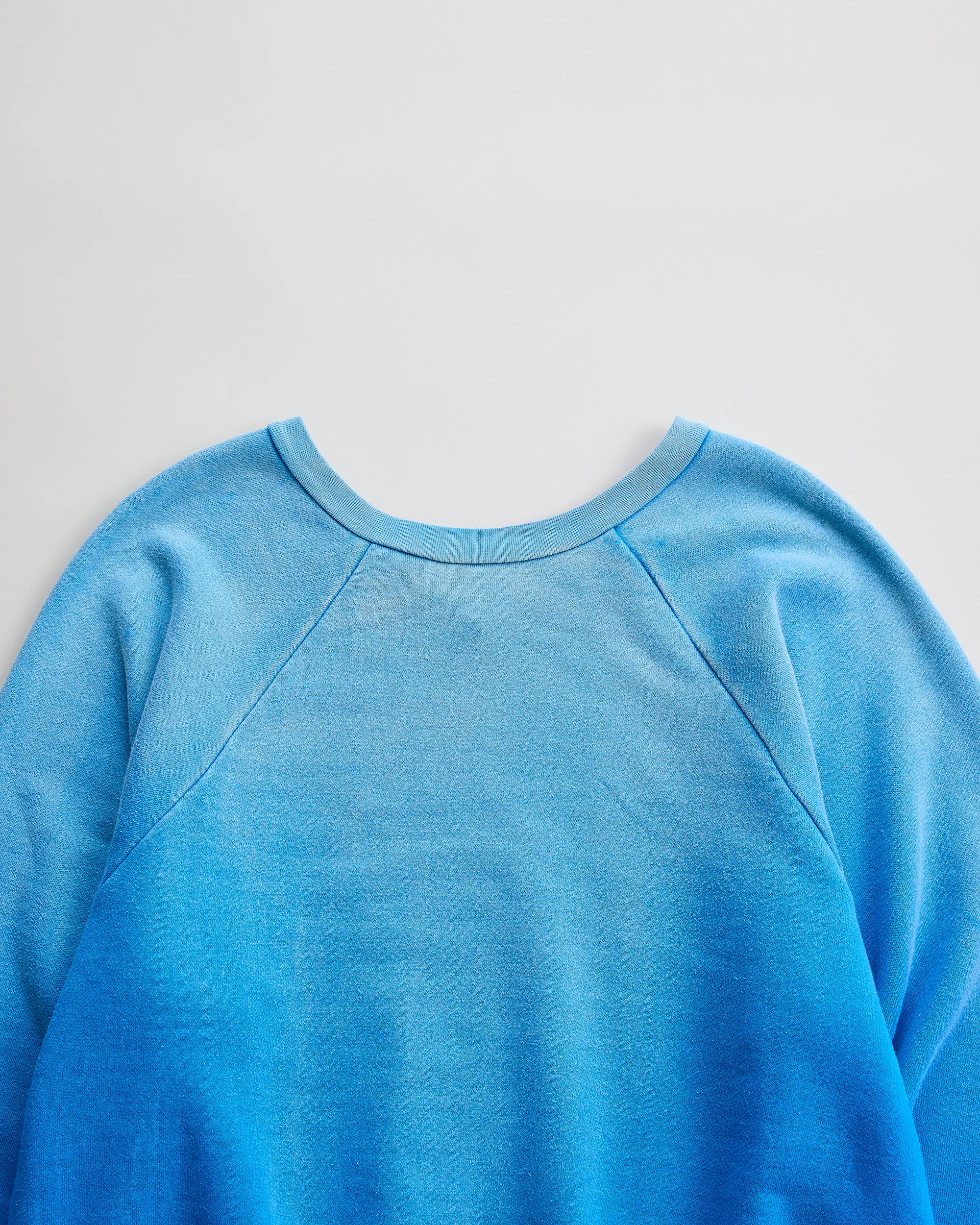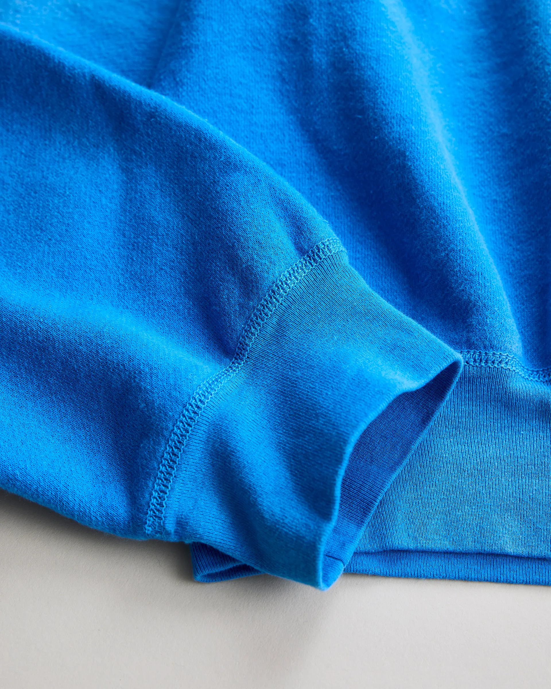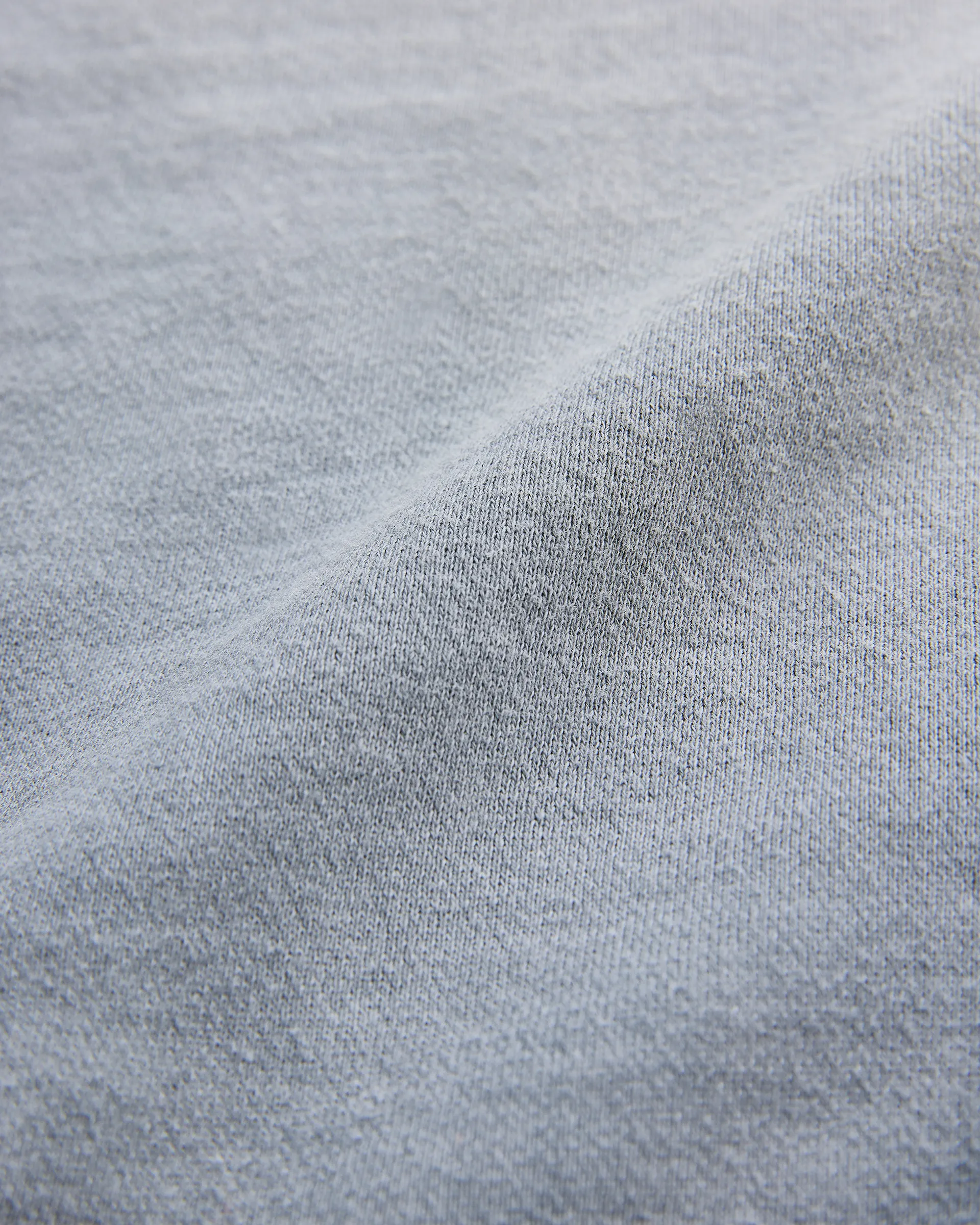 希少な旧式「アズマ編み機」を用いた丸胴のヘビーウェイト裏毛で製作したスウェットプルオーバーダブルフロント。型は1950年代〜60年代のヴィンテージスウェットをリファレンスとし、Vネックとクルーネックを前後どちらでも選べるダブルフロント仕様。ラグランスリーブや自然に斜行する縫製仕様でヴィンテージの空気感を再現しています。生地は空気を含んだふっくらとした質感と柔らかさ、肌馴染みの良さが魅力。職人によるエイジング加工を施し、時間を経たような奥行きと立体感を演出しています。