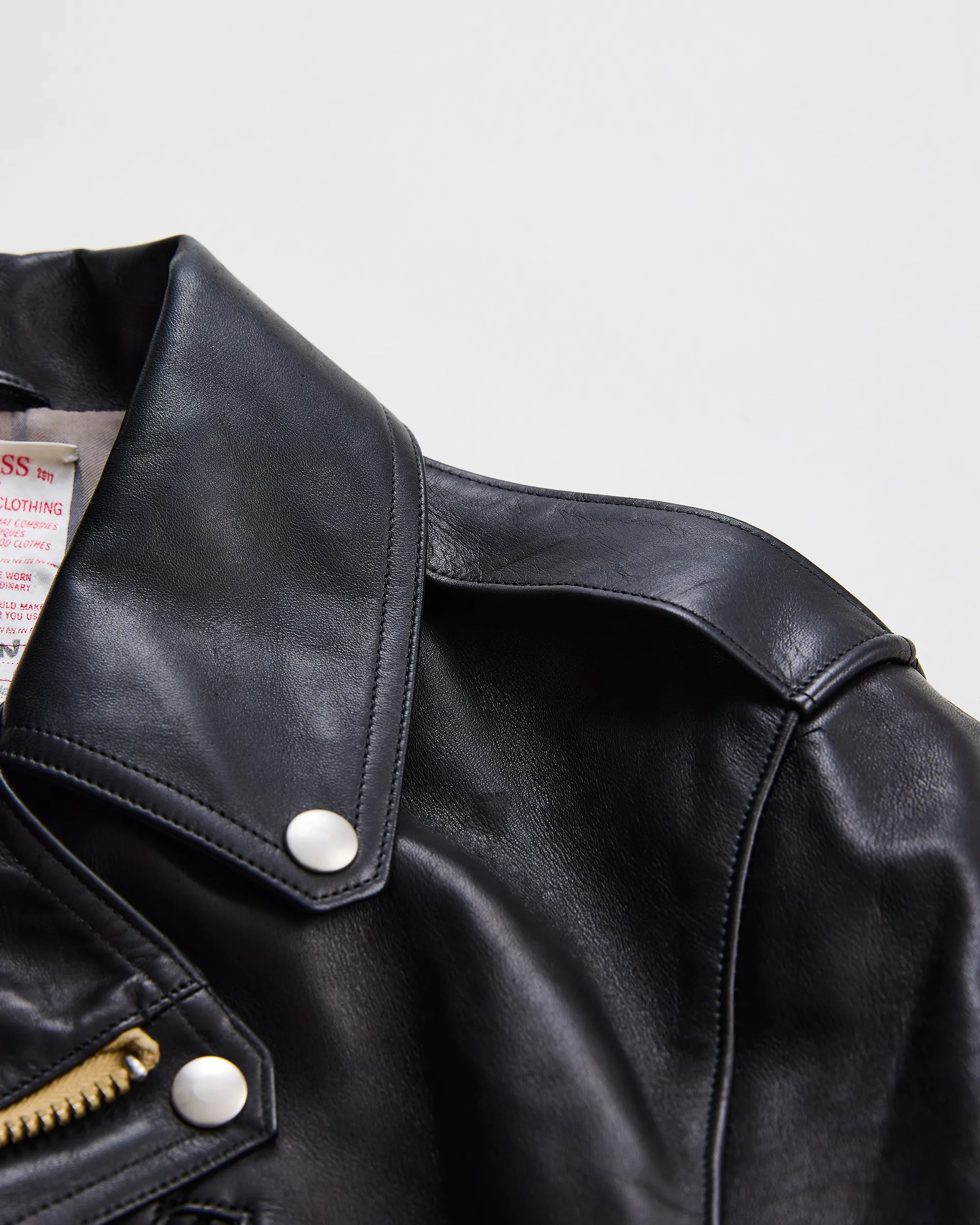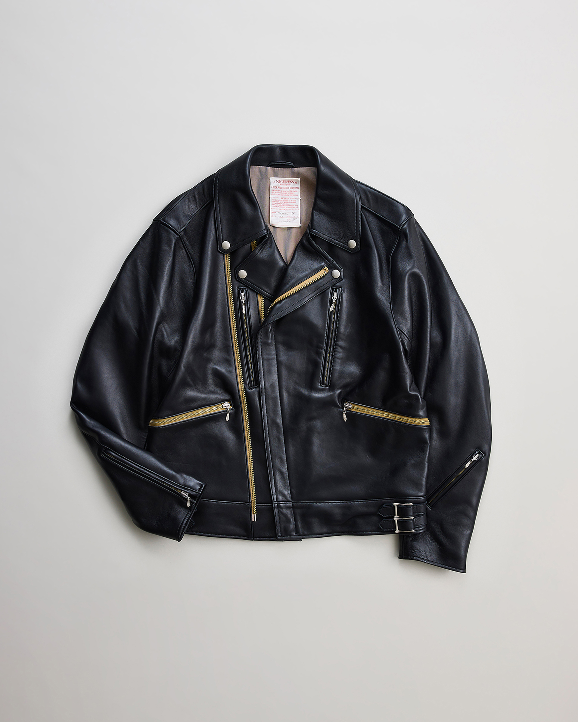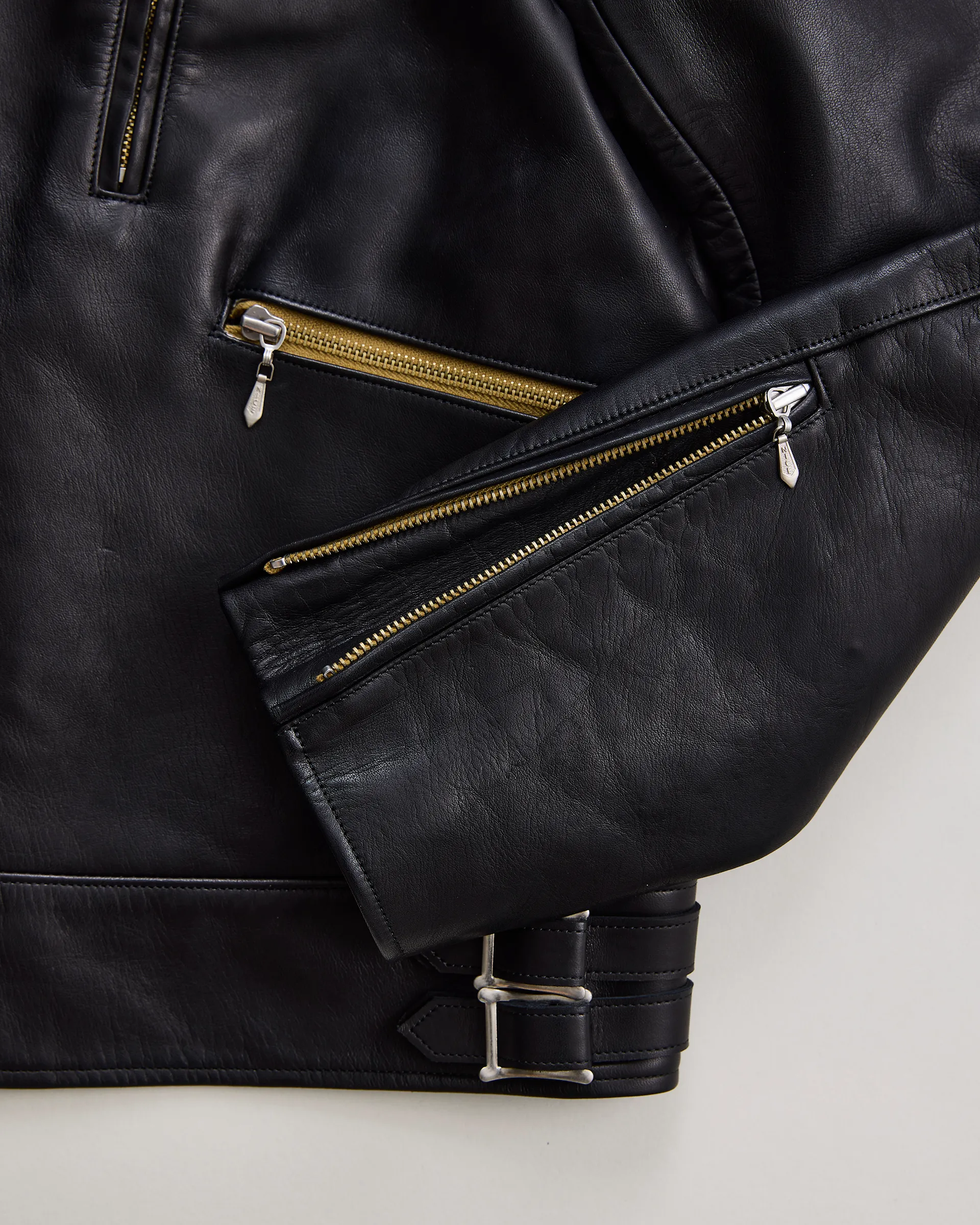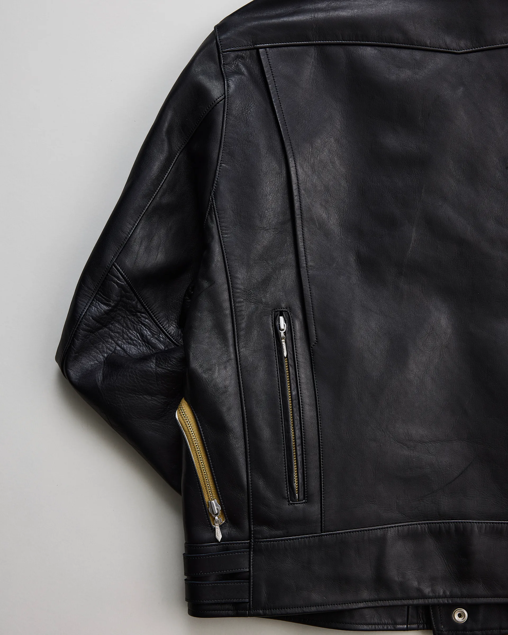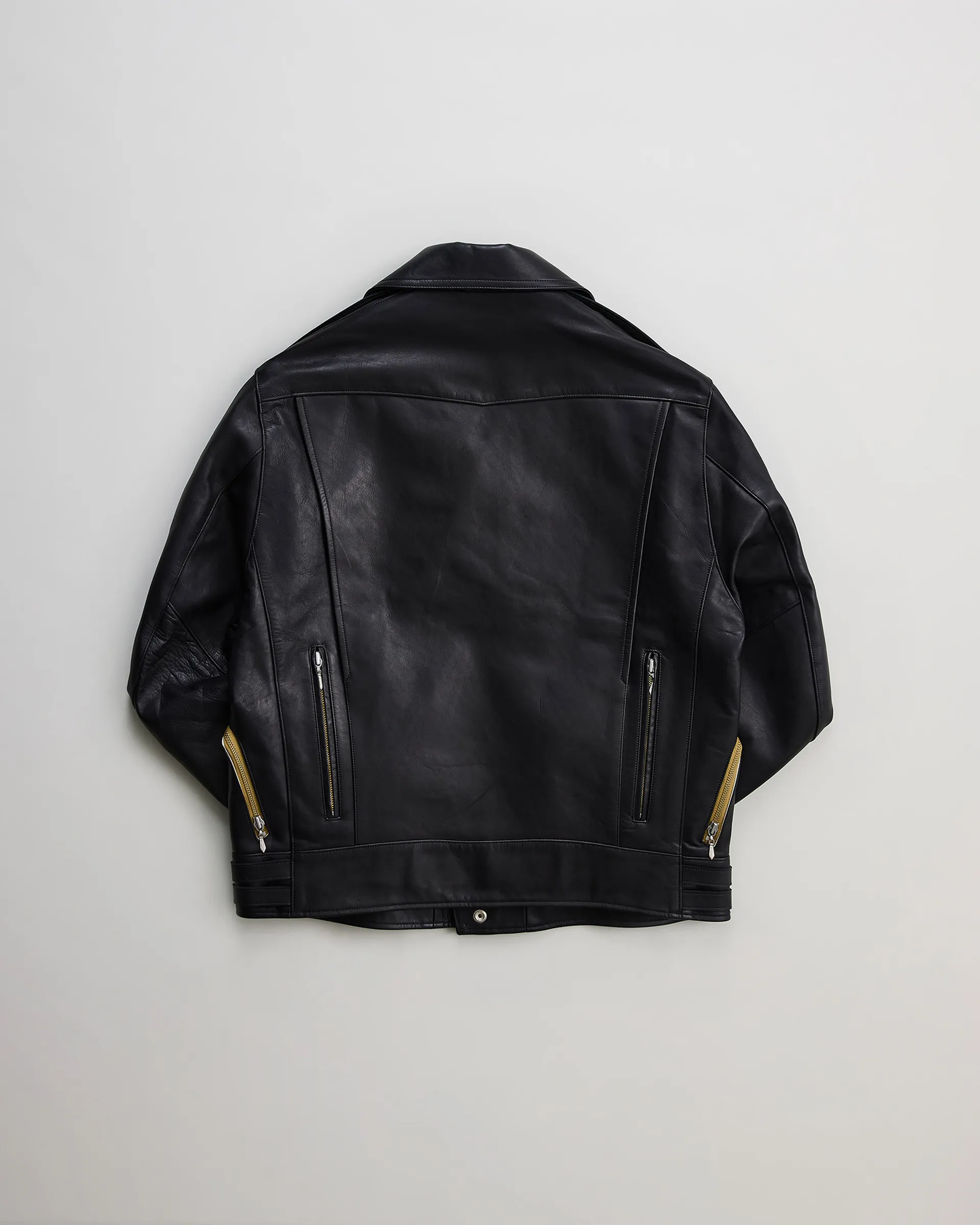 ヒマラヤ山脈の寒冷地で育ったシープスキンで製作したツイントラックライダースジャケット。1970年代イギリスのライダースジャケットをリファレンスとし、身幅調節を可能にするツイントラックパターンを採用しています。厳しい自然環境により虫食いが少なく、きめ細やかな原皮が特徴で、素上げに近いナチュラルな表情を実現。シープ特有の柔らかさとしっかりとした肉感を両立しています。腰ポケットにはウォレットディテールを取り入れ、CLIXファスナーとオリジナル引き手でヴィンテージライクな空気感を演出しています。
