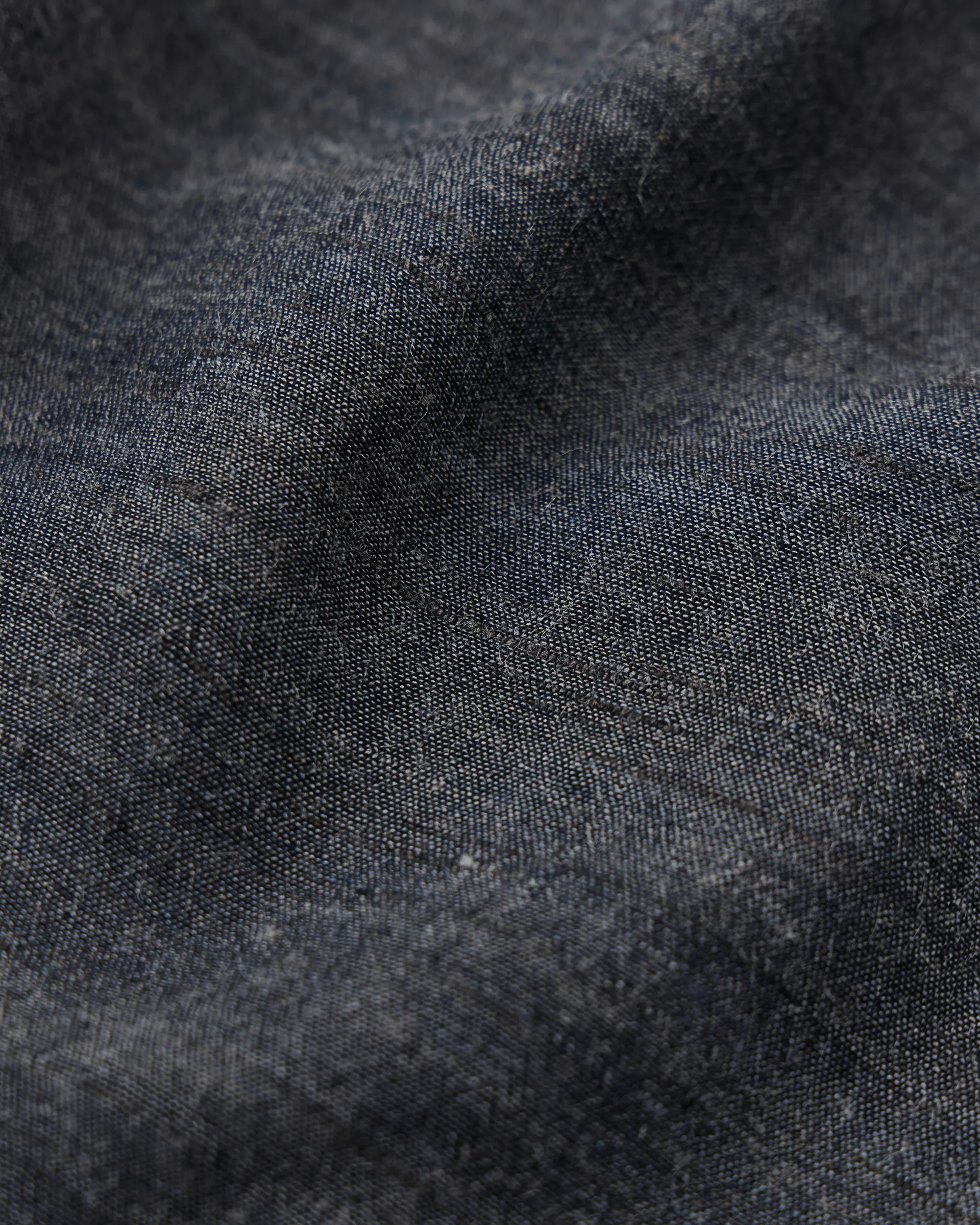 1920〜30年代の通称「ゴマシャン」をイメージして開発した、カディコットンとシルクで構成されたシャンブレー生地のワークシャツ。デザインは同時代のアメリカのワークシャツをベースに、古き良きアメリカの空気感を意識して設計。チェーンステッチを手作業で入れるなど、インドならではの手仕事によるディテールが、素朴さと奥行きを備えた独特の表情を生み出しています。
