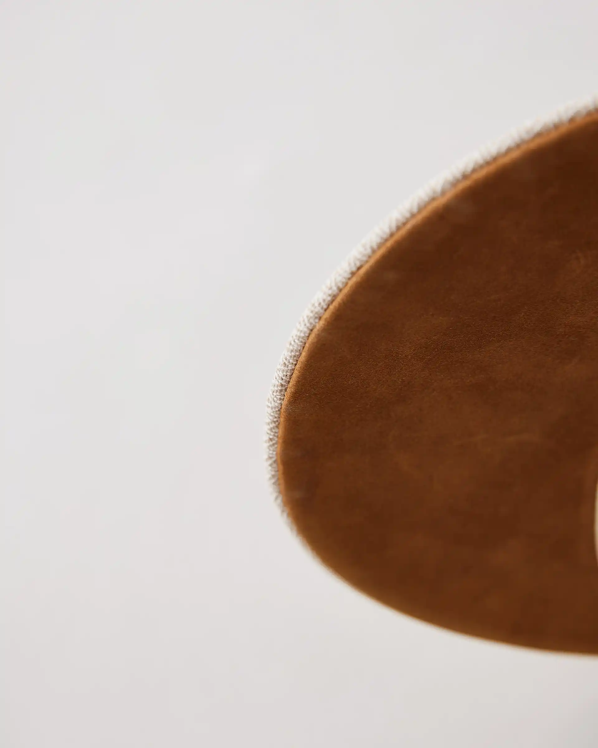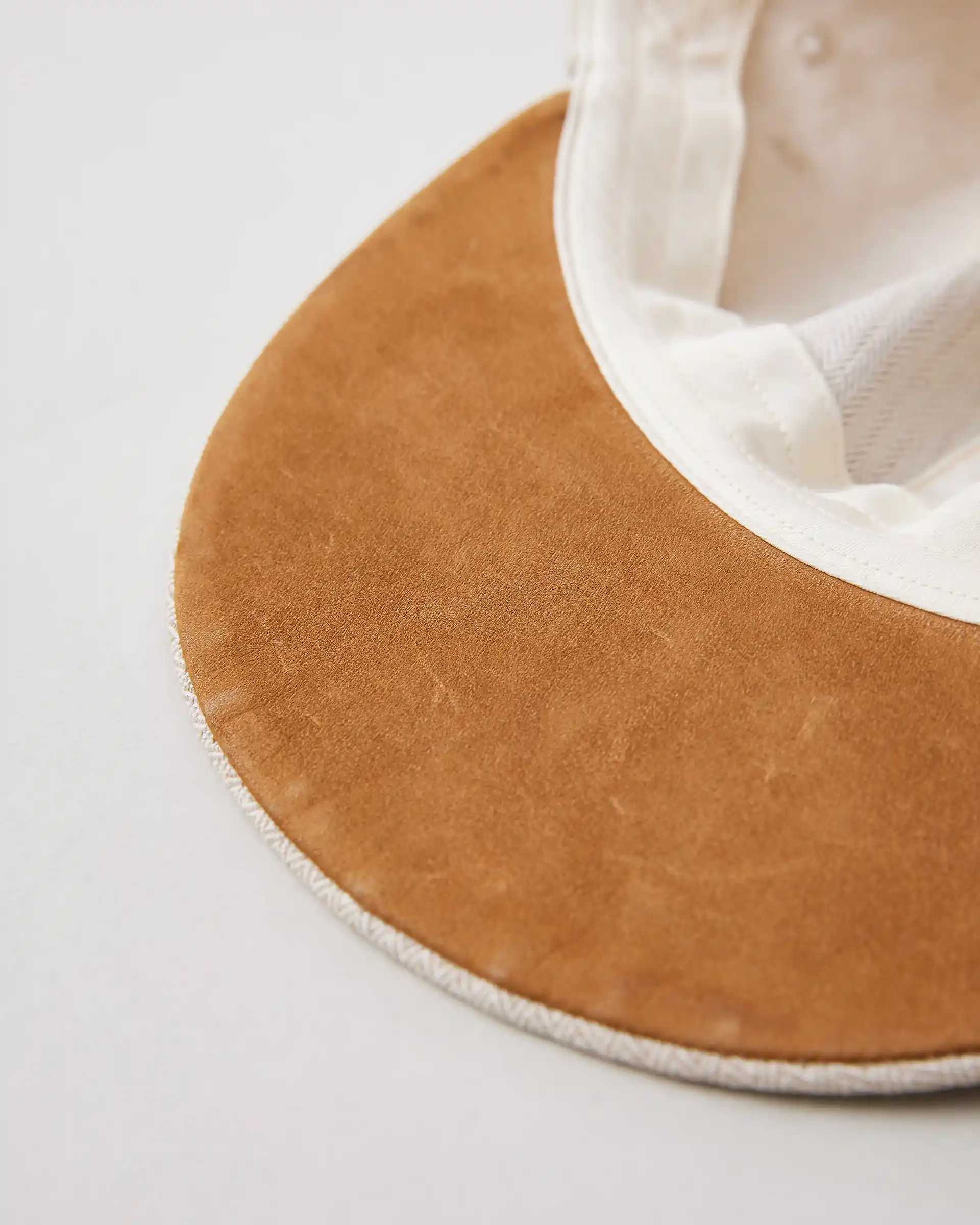 1930年代のフランス軍で作業着として使用されていたヘリンボーンボージョンをリファレンスとした生地を使用したフィッシングキャップ。1970年代のアウトドア用キャップを参考に、長めのツバ形状を採用しています。ツバ裏には水染めヌバックレザーを使用しています。