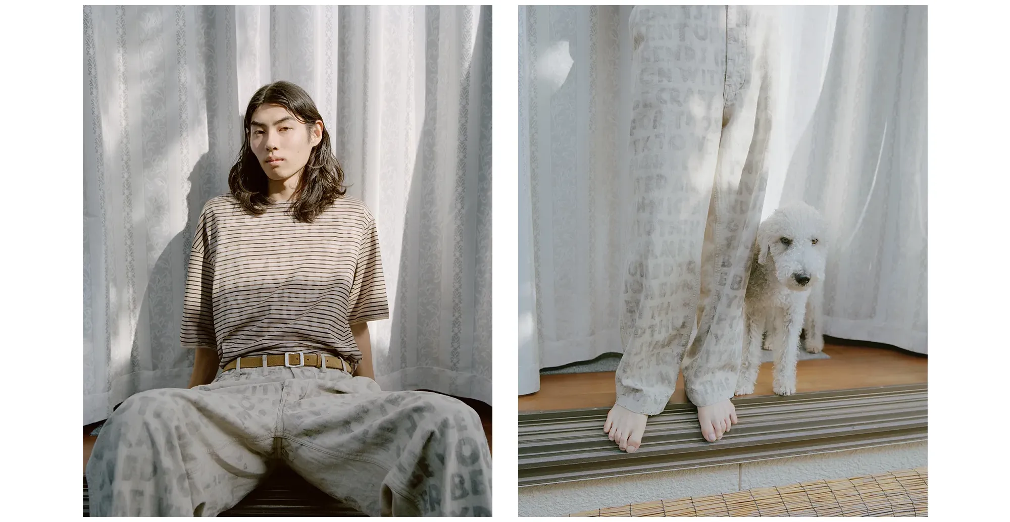 The SS26 collection reflects the spirit found in the works of Japanese masters such as Kanjiro Kawai’s ceramics and Kokuta Suda’s calligraphy—craft that fuses functionality with profound emotion. Through Piczo’s gaze, this philosophy is reinterpreted as visual narrative. Together, they reveal a subtle aesthetic of distortion—emerging in the interplay between memory, landscape, and the living body.