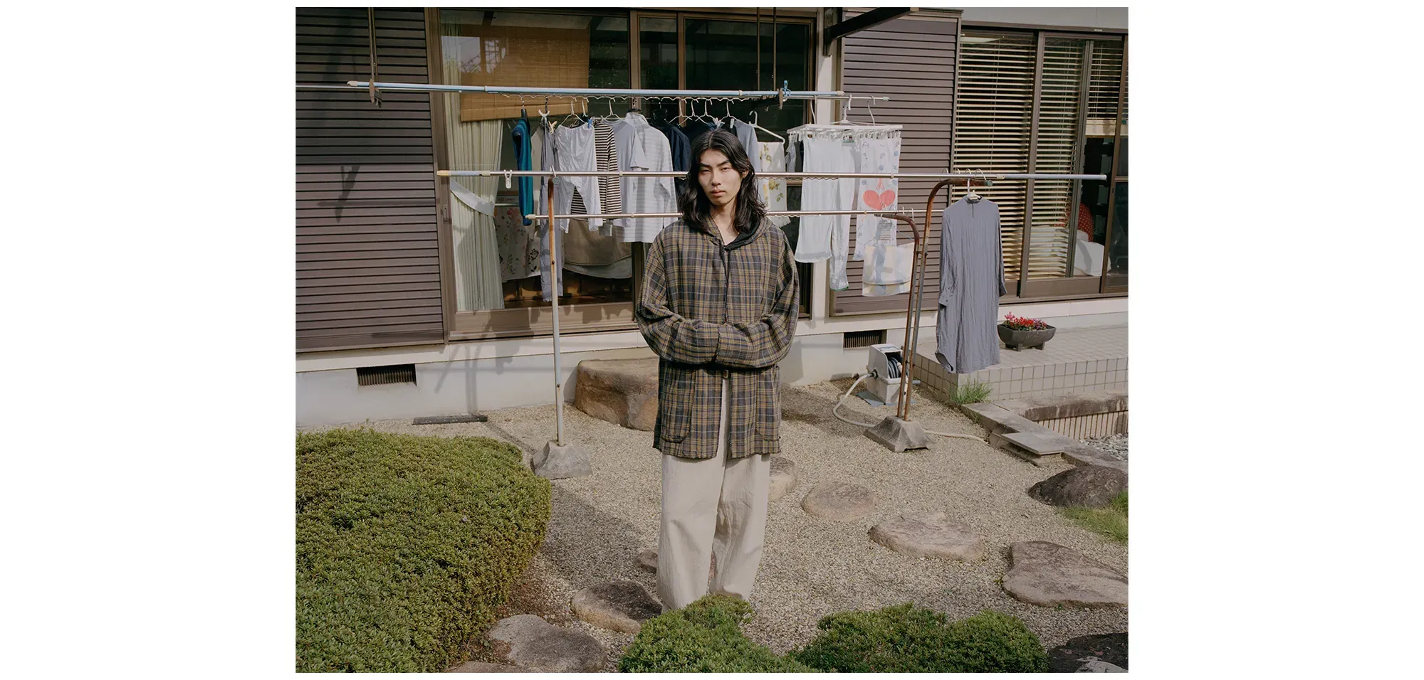 NICENESSは世界各地の文化をコレクションの着想源とし、シーズンごとに縁の地を巡りながらキャンペーンを制作している。今年、これまでに幾つもの都市を共に巡ってきた写真家Piczoが長年慣れ親しんだロンドンより故郷である大阪へ居を移した。奇しくもNICENESSはSS26シーズン、日本の精神、伝統と実験を行き来する現代の民藝をテーマの軸に据えたコレクションを制作。折よく帰郷したPiczoと日本を舞台にキャンペーンを制作することとなった。