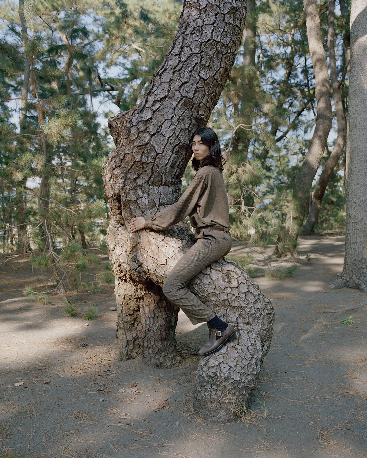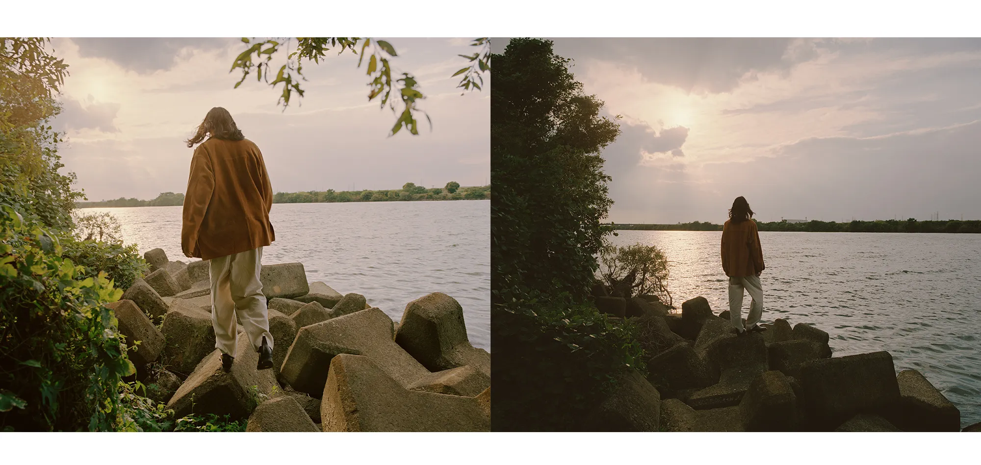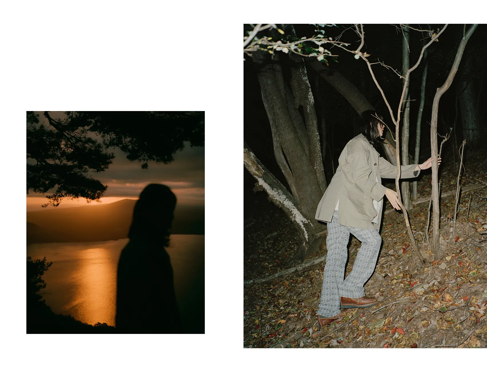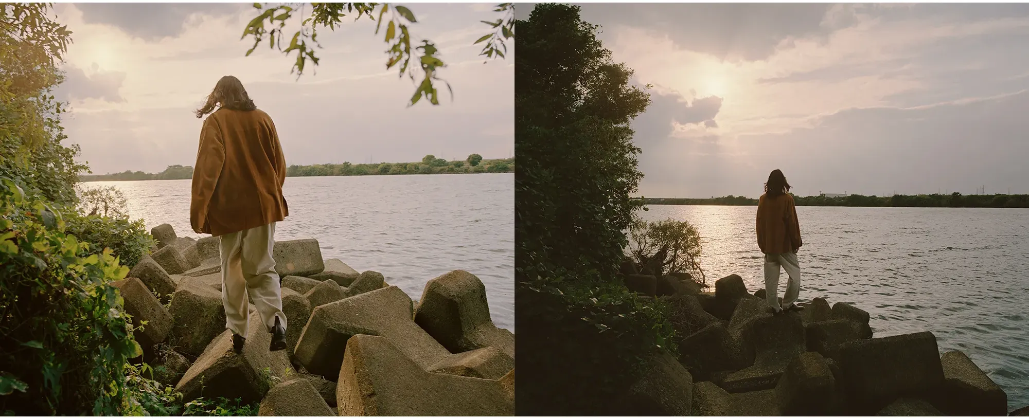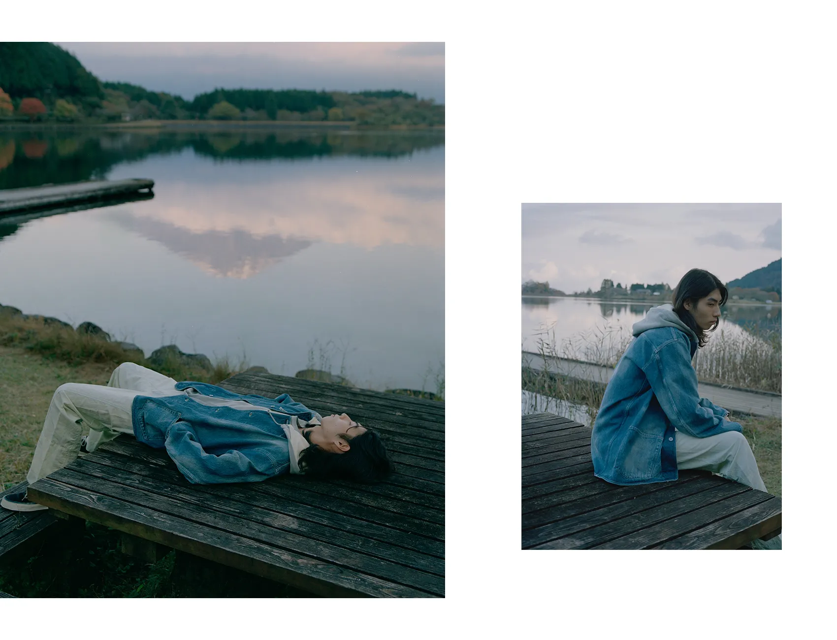 同郷の出身であるShoyaを引き連れた今回の旅路は、日本の精神性と美意識を色濃く反映した東海道五十三次と重なる。穏やかな風景が広がる両者の郷土である大阪から青春の舞台である東京へ。その道中にある富士山を象徴とする日本の自然と都市の狭間に物語を重ねていく。本コレクションでNICENESSは河井寛次郎の陶、須田剋太の書に通じる精神性を服づくりに反映させた。その思想とPiczoの視点とが重なり、記憶、風景、身体のあいだに潜む“ねじれの美”を映し出す。